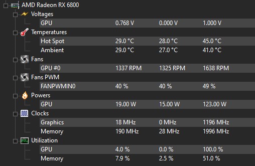 Jetzt zum Problem, die Grafikkarte geht nicht in den Zero Fan Mode. Laut Geizhals sollte sie eine besitzen.