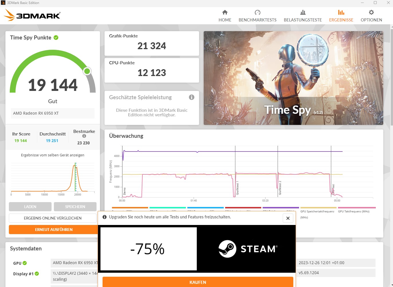 Eine der heimlichen 6950XT Karten in Form der Sapphire Toxic RX 6900XT hatte ich vor wenigen Tagen auch hier getestet, sowie meine Empfehlung für eine mögliche Konfiguration dazu abgegeben: https://www.computerbase.de/forum/t...fizienz-getrimmt.2123443/page-5#post-27828940 Obwohl der Speicher auf der Toxic zum Übertakten freigegeben war, ließ der sich nur geringfügig weiter über die bei anderen Karten bekannte Beschränkung von 2150 MHz hinaus stabil betreiben. Mehr Takt führte zwar nicht zu Abstürzen, erzeugte aber nachweislich weniger Punkte in Benchmarks.