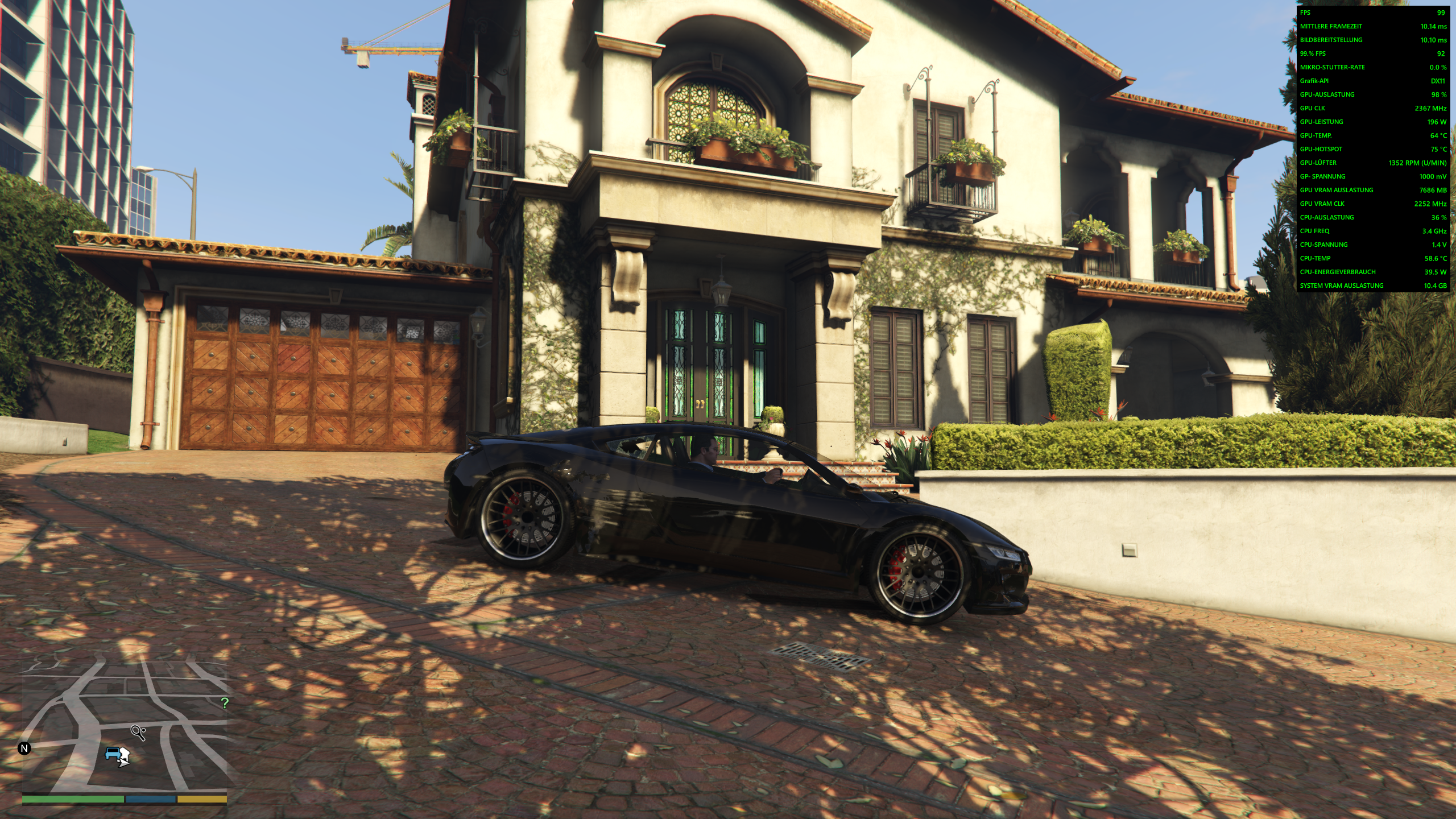 Da mir beim Ausloten der effizientesten Einstellungen schon das Potenzial aufgefallen war, konnte ich nicht umher einen Rekordversuch zu starten. Die 6600XT, 6700XT und 6900XT Toxic von mir hatten ja auch schon sehr weit vorne gelegen. Leider habe ich keinen Vergleich gefunden, aber es kann gut sein, dass das eine der schnellsten luftgekühlten Big Navi Karten der Welt ist. Einen Wasserkühler braucht die MERC jedenfalls nicht. Das Problem wird nämlich eher die Stromversorgung und Belastbarkeit der Bauteile generell. Das Problem hätte man auch mit WaKü. Ich vermute dass andere nur mit Minustemperaturen schneller sind. Die helfen nämlich beim Extrem-Übertakten den Stromverbrauch zu senken, bzw. auch dabei höhere Taktraten bei weniger Spannung zu fahren. Für diese Benchmarks habe ich ganz andere Einstellungen verwendet und bin an die Grenze dessen gegangen was ich verantworten kann. Die Karte soll schließlich nicht kaputt gehen. Ca. 2,7 GHz auf dem Kern, 2125 MHz auf dem Cache und 2,4 GHz auf dem Speicher lagen unter Last an und waren auch stabil.