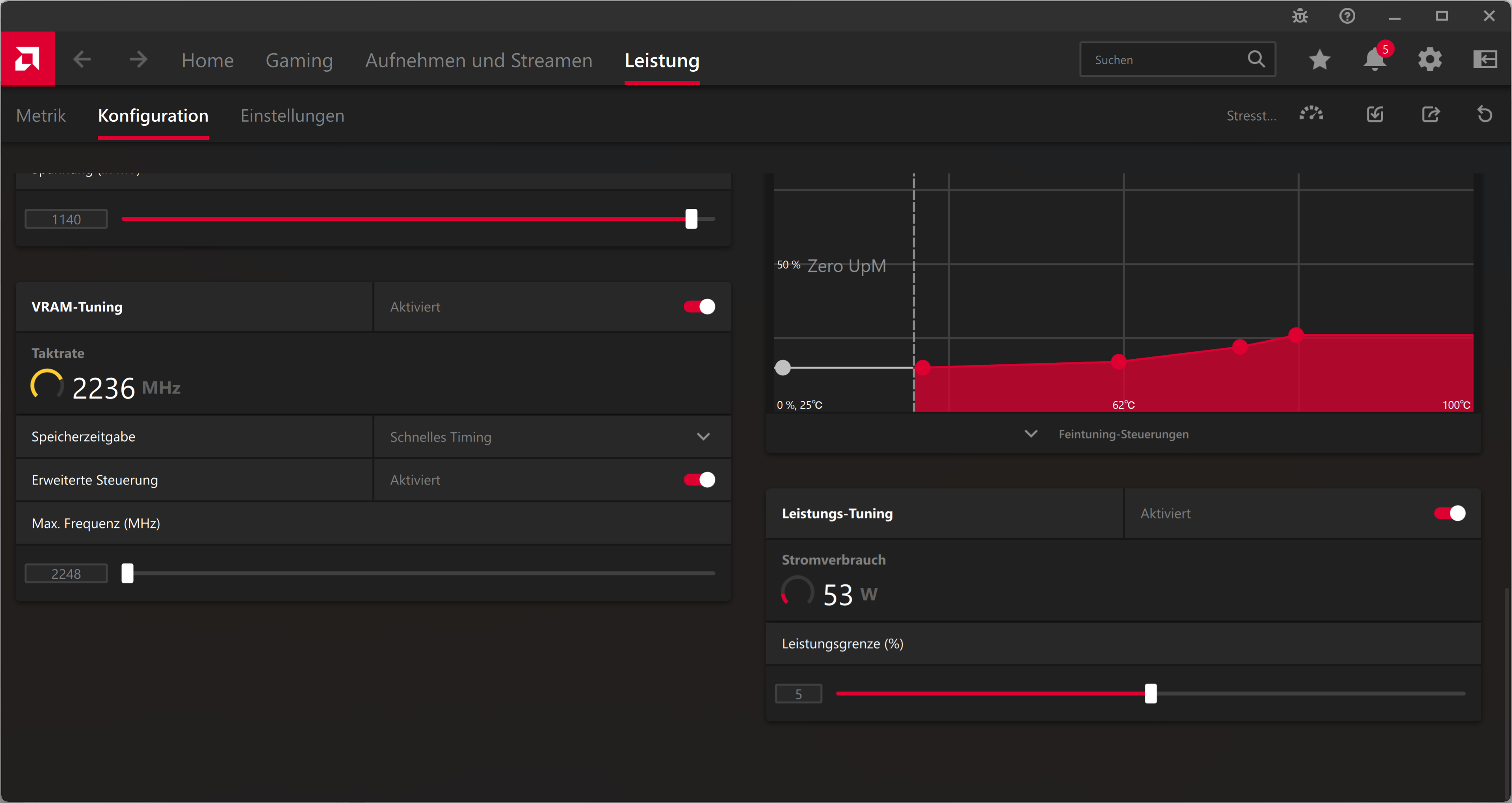 Der Betrieb ist so natürlich unvernünftig und deswegen hier, wie ihr es von mir kennt, auch noch alltagstaugliche Einstellungen vom MPT und Treiber für einen kühlen, leisen, schnellen, aber verhältnismäßig sparsamen Betrieb:
