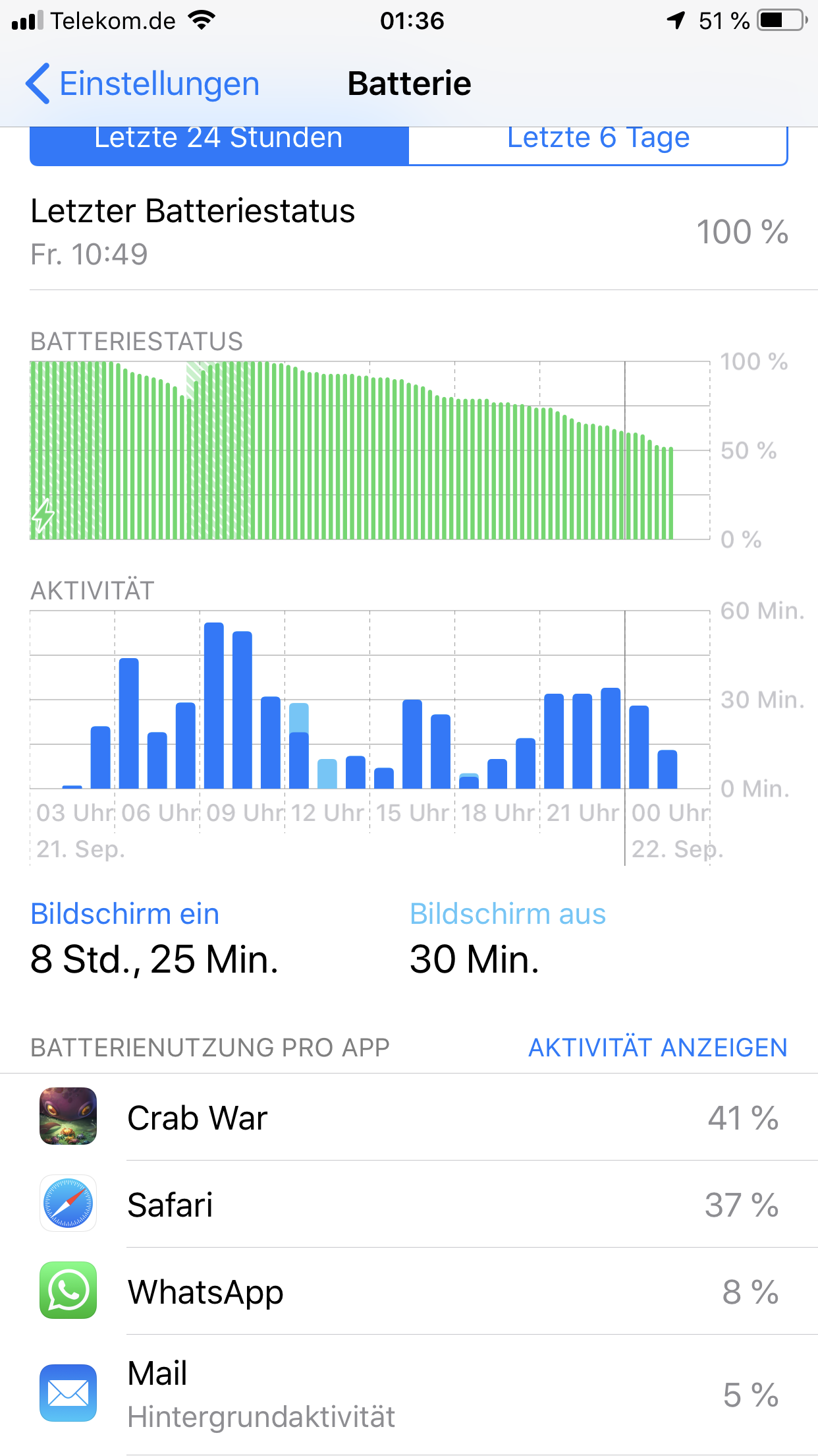 Auf deinem Screenshot steht Bildschirm an 6 h 37 min