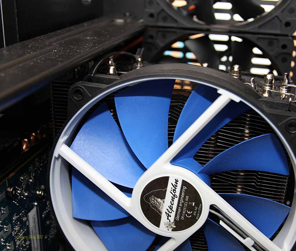 Übrigens: 140mm ist die maximale Breite eines CPU-Kühlers, wenn eine Grafikkarte eingebaut wird. Die Befestigung des Lüfters darf dabei nicht über den Kühlkörper hinaus in den Bereich der Grafikkarte ragen. Sonst gibt das eine schönes Feuerwerk beim ersten Einschalten (Stichwort: Kurzschluss!).