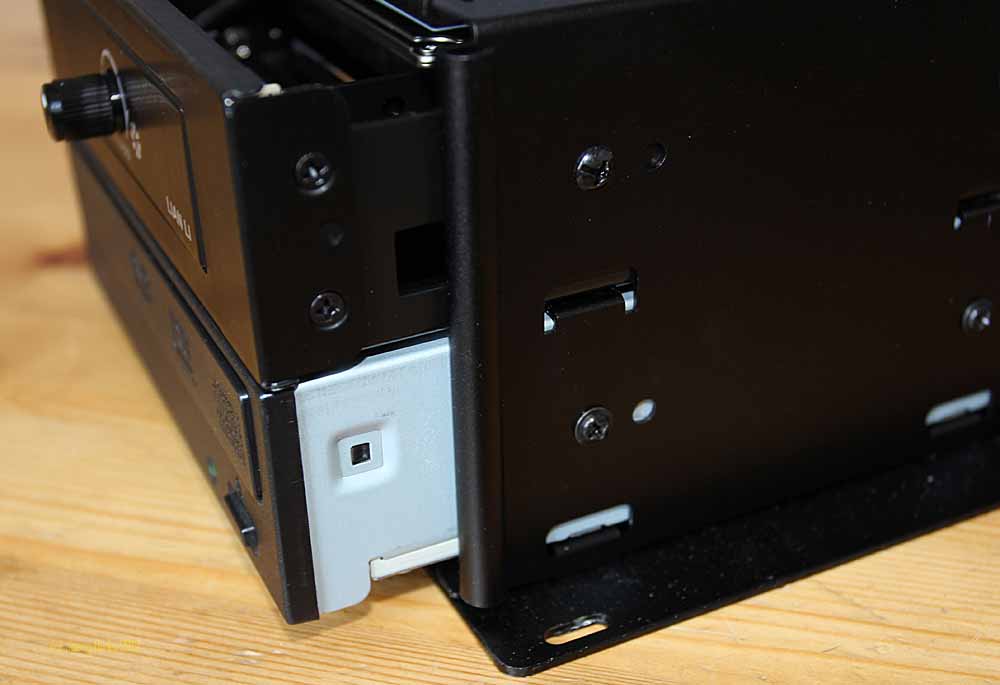 Was mich am 5,25“ Laufwerkskäfig wieder störte, waren die Bohrungen für die Halteschrauben. Kein Haltesystem, welches eh ineffektiv wäre (habe noch keins unter meinen Fingern gehabt, dass die Laufwerke wirklich bombensicher fixiert hat) und auch kein Führungsschienen, mit denen man die Verschraubung so anpassen könnte, dass die Laufwerke oder die Lüfter Steuerung völlig plan mit der Front abschließt. Man kann nicht alles haben.