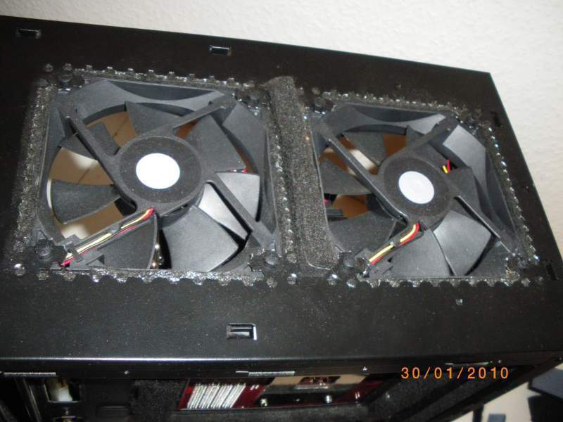 zum dämmmaterial weiss ich nicht. Ich regel die lüfter über speedfan. Ist am anfang komplieziert aber so nach 1 1/2 hatte ichs raus die laufen bei mir mit unhörbaren 300rpm im idle.
