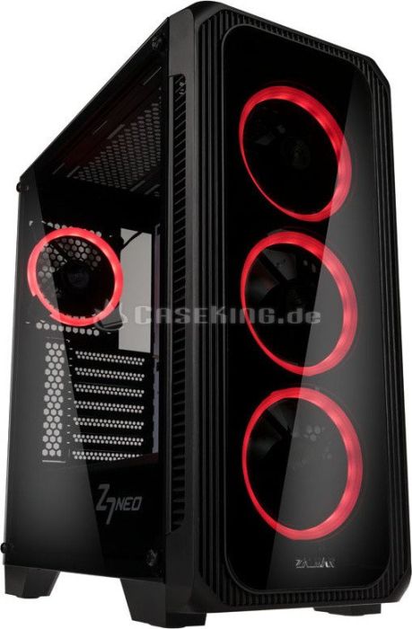 Xigmatek nutzt Glas und LEDs zur Gestaltung des Midi-Towers Poseidon. Beide Elemente verleihen der Vorderseite ihr Gesicht: Lüfter mit beleuchtetem Ring-Rahmen werden dort mit einem bunten Zierstreifen kombiniert. Gesteuert werden die Dioden über das Mainboard oder mit Hilfe einer (optionalen) Fernbedienung.