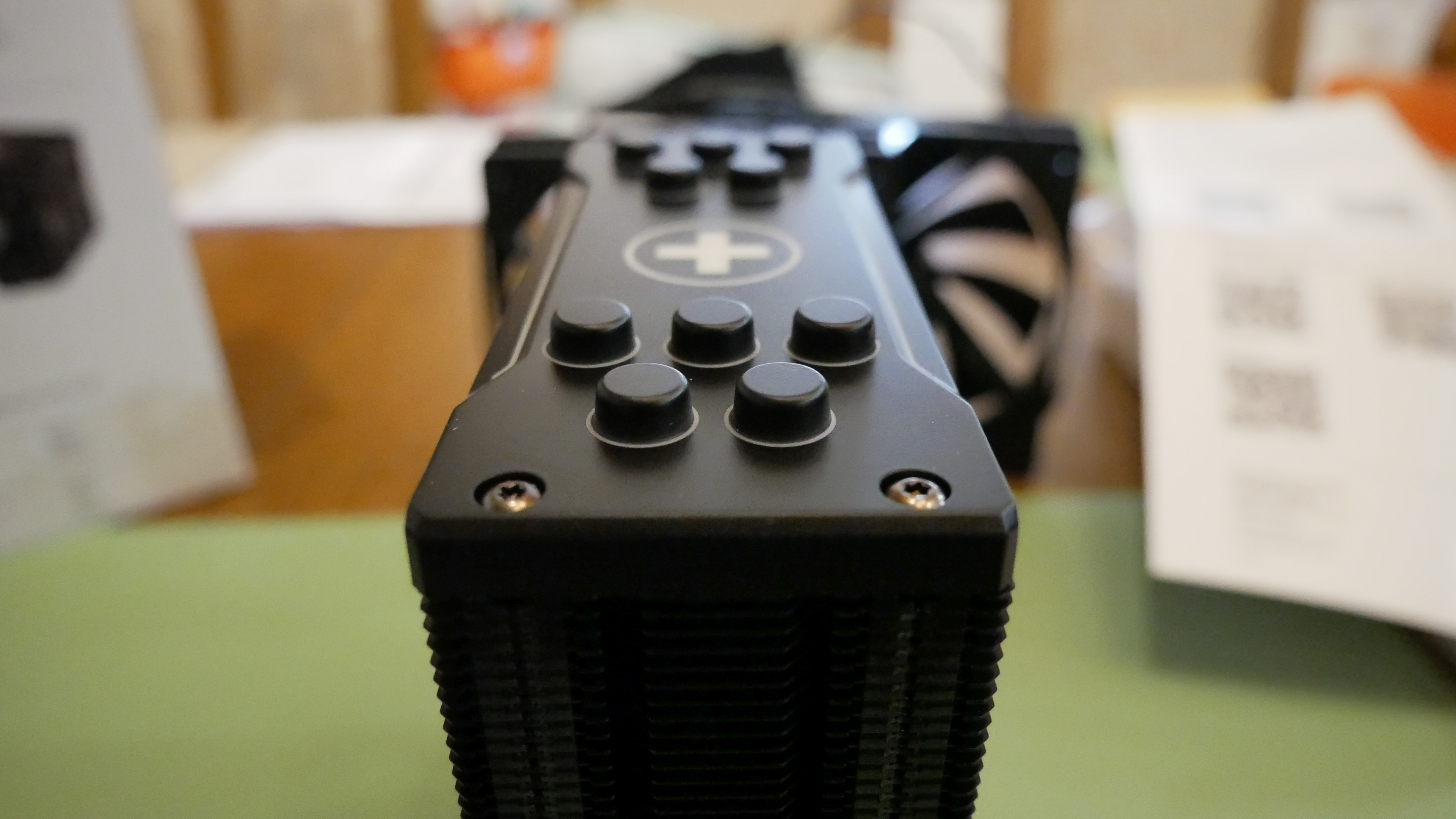 Der Kühlturm selbst wirkt hochwertig und schlicht zugleich. Das mattschwarze Finish wirkt edel, der Kunststoff-Deckel ist sauber verarbeitet und schließt bündig mit dem Kühlfinnen ab. Zudem ist der Tower leicht zur linken VRM-Seite versetzt, weshalb man bei der Montage darauf achten sollte, den Kühler nicht um 180 Grad verdreht auf das Board zu setzen - andernfalls hängt der Lüfter bei der Montage in die RAM-Bänke hinein. Dieses leichte Versetzen des Kühlturms zur Seite hin ist nichts neues und spätestens seit dem Noctua NH-D15 in der "S"-Variante bekannt und unter Enthusiasten sehr beliebt. Im Preisbereich von unter 40 Euro jedoch handelt es sich dabei um die Ausnahme. Selbst Branchengrößen wie Arctic, Thermalright, DeepCool, PCCooler und Zalman bieten das nicht an. Lediglich Enermax scheint mit den verschiedenen Varianten des ETS-F40-FS genauso viel Wert auf RAM-Kompatibilität zu legen.