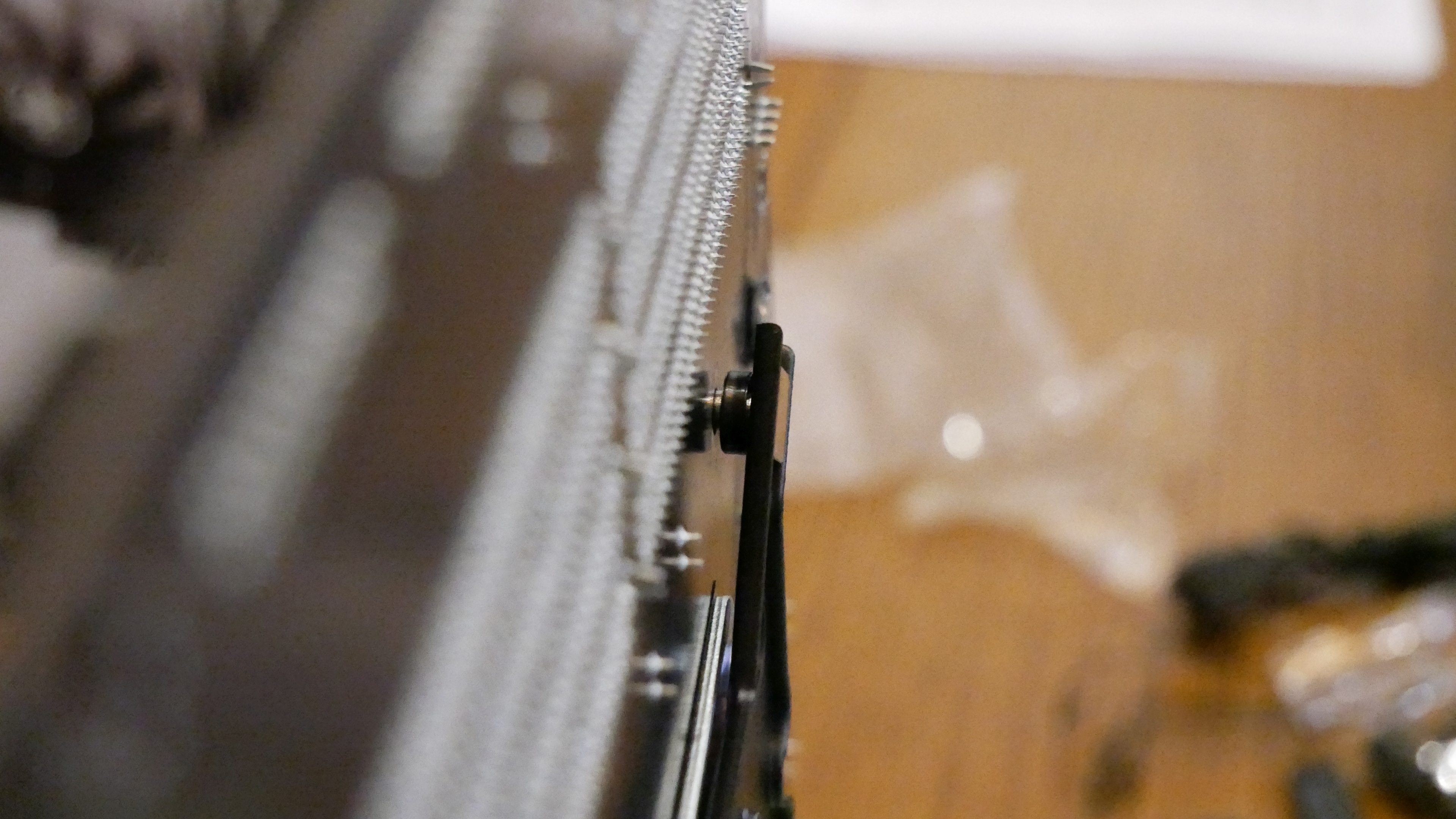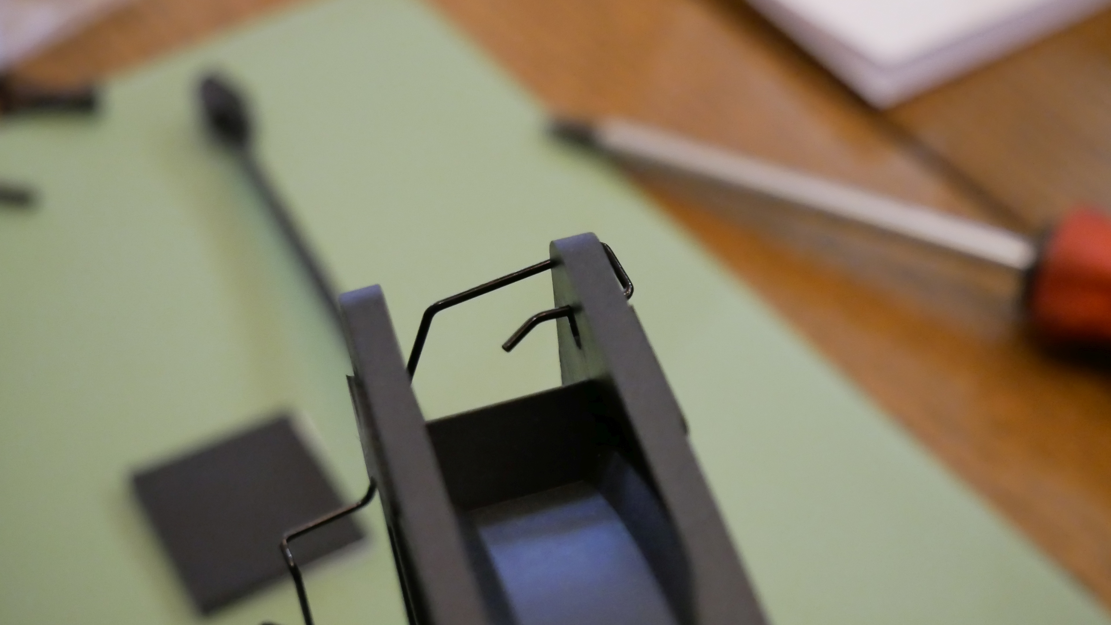 Bei der Montage der Lüfter fällt ein einfaches, zugleich jedoch aber geniales Gimmick auf. Die Halteklammern sind - übrigens ebenfalls schwarz lackiert - so geformt, dass sie in die Montageöffnungen der Lüfter eingeführt und dann fest montiert bleiben. Ein weiterer Biegeprozess bei der Fertigung des Drahts sorgt hier für den perfekten Halt. Die beiden Klammern lassen sich somit bereits vorher frei am Lüfter fixieren und erleichtern die Montage am Kühlturm ungemein. Auch das ist keinesfalls selbstverständlich, ganz unabhängig vom Preis. Desweiteren ist die Materialstärke der Halteklammern positiv hervorzuheben. Hier ist kein möglichst dünner Draht, sondern ein ordentlicher Durchmesser gewählt worden, der sich stabil packen und wunderbar auf den Kühlturm aufspannen lässt.