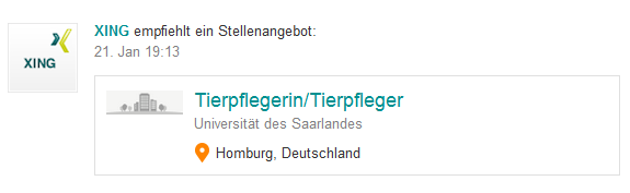 Xing? Ist das so etwas wie das deutschsprachige LinkedIn? Die frage ist da nur, für was? Ich meine ja, LinkedIn macht irgendwo noch Sinn, da man auch mit Kontakten ausserhalb der eigenen Firma in Kontakt treten kann und eventuell noch interessant für Headhunter etc... aber Xing? Ich meine, das wäre ja in etwa so, als gäbe es ein eigenes Facebook, aber nur für Deutschland. Ich sehe den Sinn dahinter irgendwie nicht. Klar, jetzt wo sie eine Stellen-Suchmaschine noch haben machts Sinn, aber eben als Stellensuchmaschine, nicht als Businessnetzwerk...
