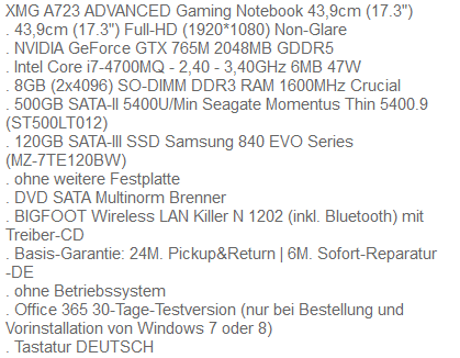neulich habe ich ein XMG A723 erworben und bin damit bisher sehr zufrieden, bis auf folgende Schwierigkeiten: