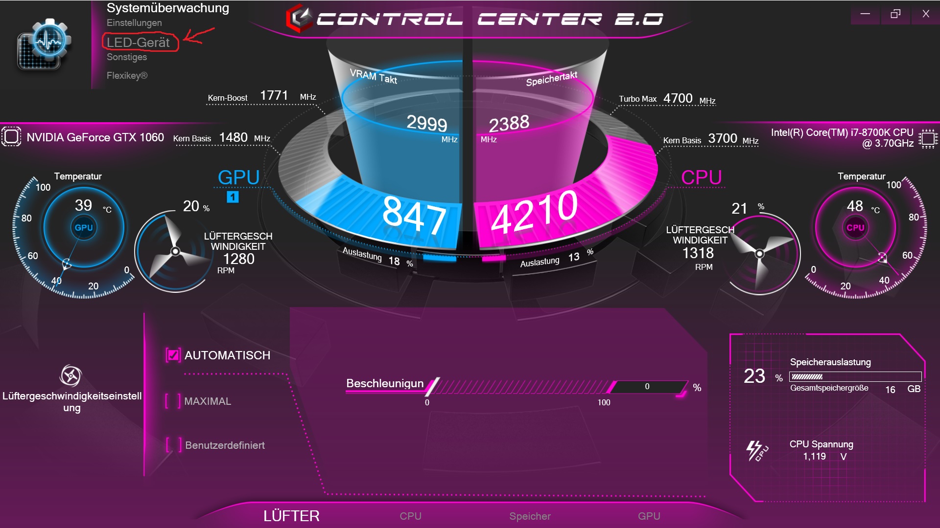 Leider fehlt der Reiter im Control Center AP 2.0 bei dem man die Tastaturbeleuchtung konfigurieren kann.