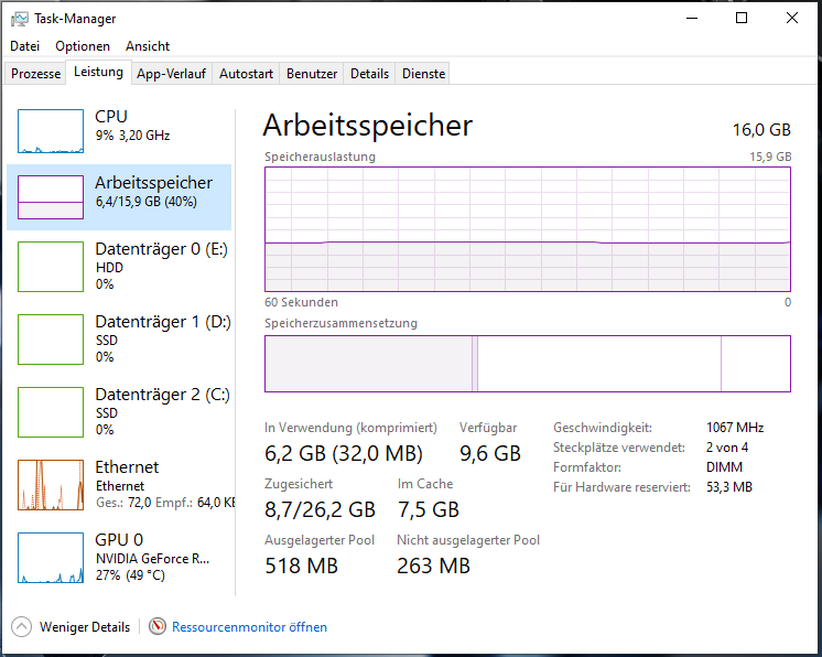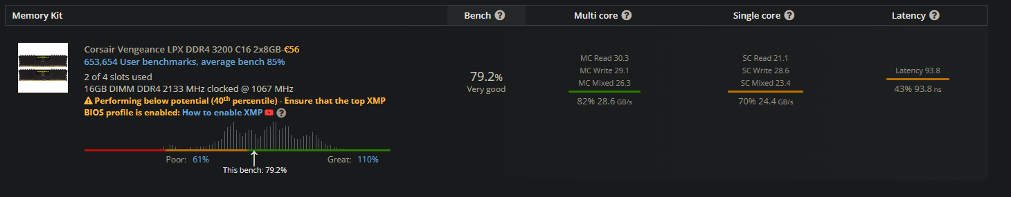 Hi đ, wie schon gesagt hab ich XMP Profil 2 (3200Mhz) im BIOS aktiviert und erhalte zumindest im userbenchmark keine nennenswerte Ănderung (XMP zu enablen wird auch weiterhin vorgeschlagen). Kann ich mit irgendeiner Software die aktuelle Frequenz tracken um davon einen Screenshot hochzuladen? Bei DRAM frequenzy hab ich bisher [Auto] drin.