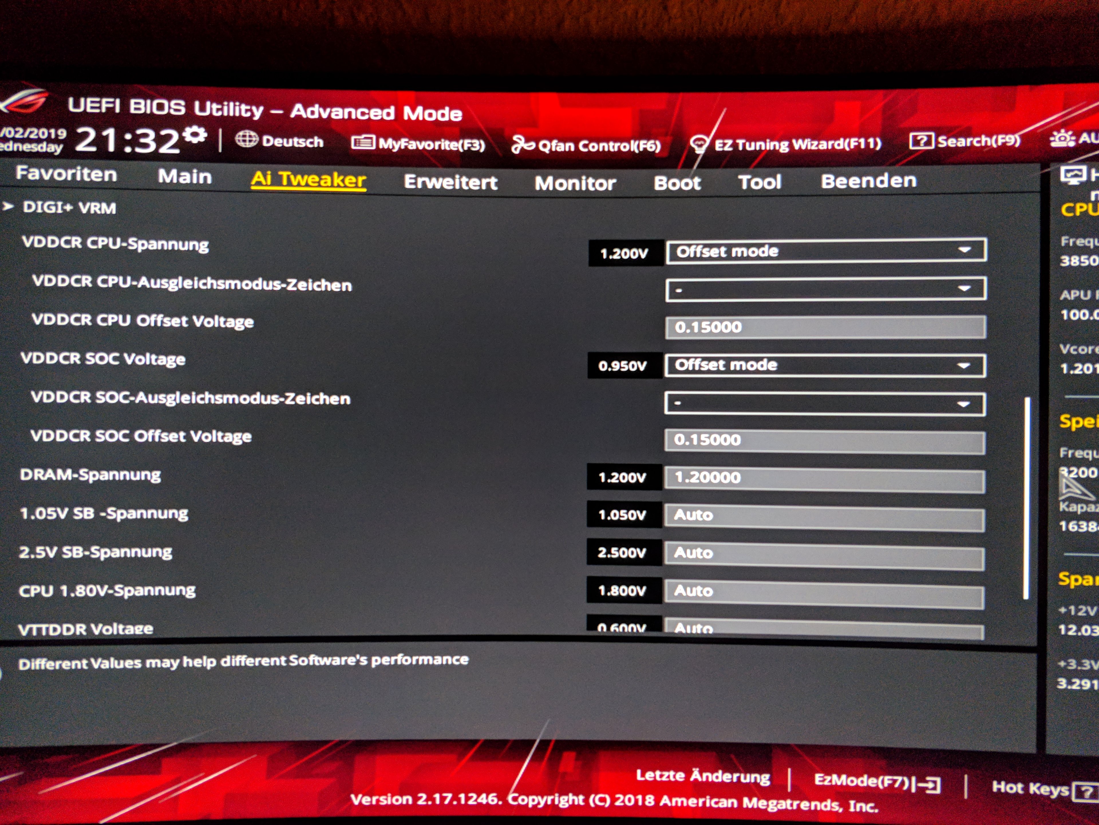 Das hat nichts mit der tatsächlichen Spannung zu tun. Wenn du HWInfo startest, fragt er dich ja, ob du nur die Sensoren haben willst, da siehst du auch, wie hoch die echte Spannung ist (oder klick oben auf Sensoren). Und auch im BIOS müssten die 1,35V ersichtlich sein.zelect0r schrieb:Im UEFI BIOS.