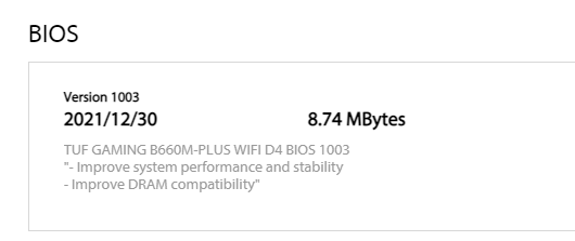- Mainboard: ASUS TUF Gaming B660M-Plus WIFI D4