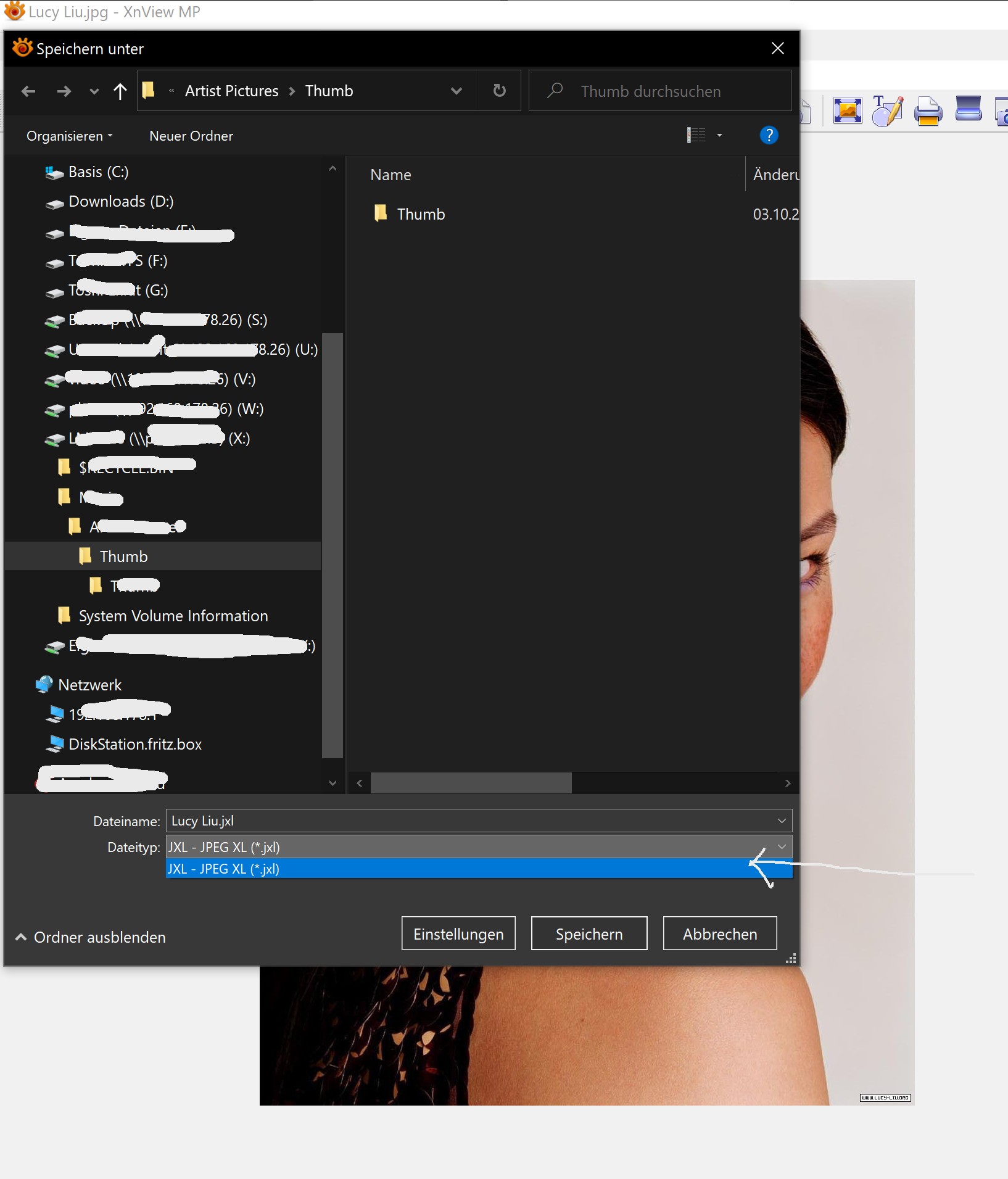 Aber wenn ich eine Datei bearbeite und dann auf "Speichern unter..." gehe, kommt als voreingestellter Dateityp immer nur "JXL - JPEG XL (*.jxl)" und ich kann diese Voreinstellung nicht ändern.