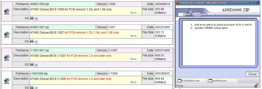 Also wenn dein Board mit BIOS 1001G Ausgeliefert worden ist, hast du eins der ersten Boards (also ein recht frühes PCB, 2.0 auf keinen Fall und dann bleibt eigenltich nur das 1.03 als ältestes übrig - demnach kannst du auf A7N8X Deluxe BIOS 1007 problem los flashen - vielleicht hast du ja auch son PCB 1.4 und dann könntest du sogar auf 1008 flashen)