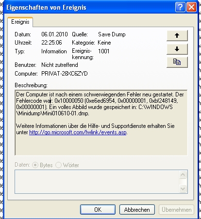 Also habe ich in der Ereignisanzeige nachgeschaut nachdem der rechner neugestartet hatte, siehe anhang.
