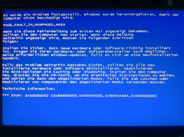 Bluescreen of Death schrieb:PAGE_FAULT_IN_NONPAGED_AREA