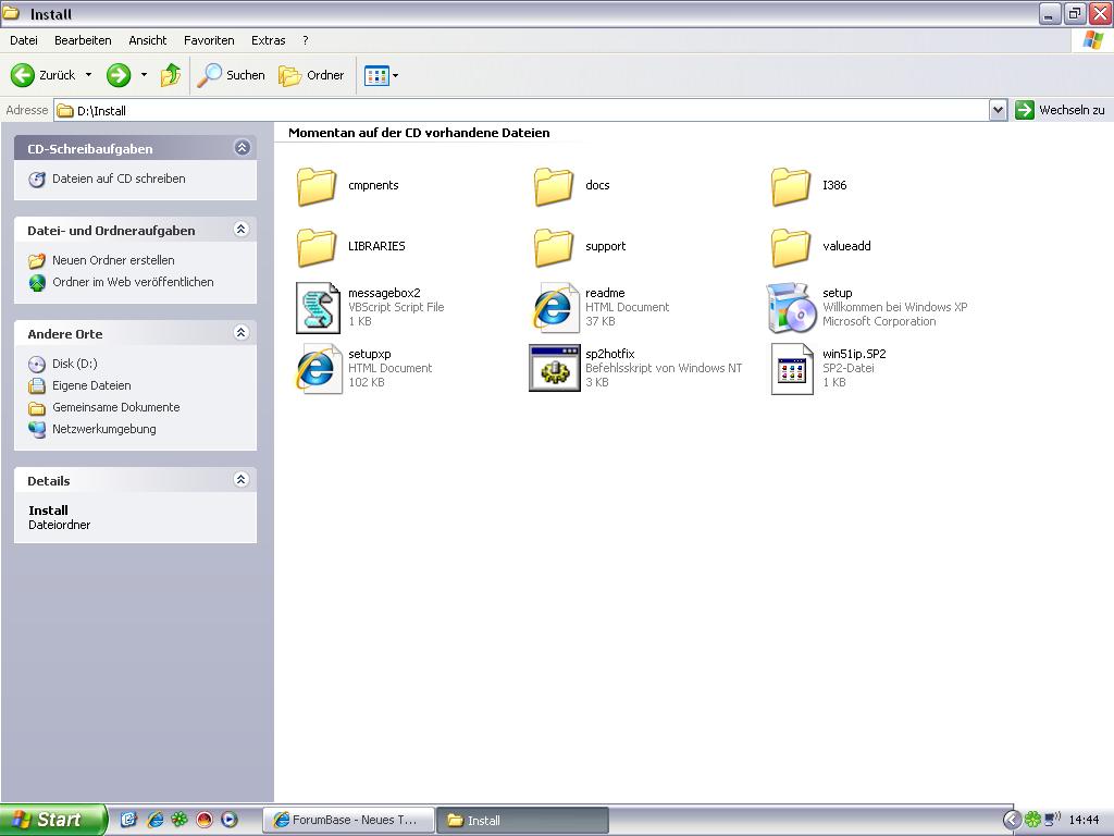 Außerdem gibt es bei meiner XP-Home-CD noch zwei zusätzliche Dateien, die eigentlich bei einer SP2-Integration dabei sein müssen, nämlich: Win51 und Win51IC. Bei Professional ändert sich halt dann der Name IC in IP um, also Win51IP. Aber die zwei Dateien fehlen in dem HDD-Ordner.