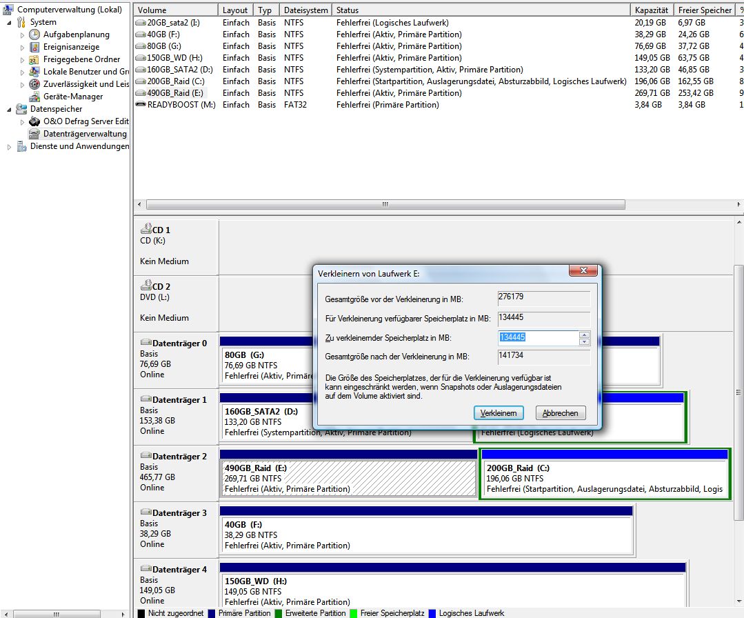 Wo muss ich bei XP drauf klicken, das ich die Partition verkleiner kann?
