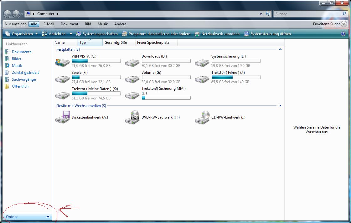 Wie geht man unter Vista vor, um die oben beschriebene Ordneranzeige zu bekommen?