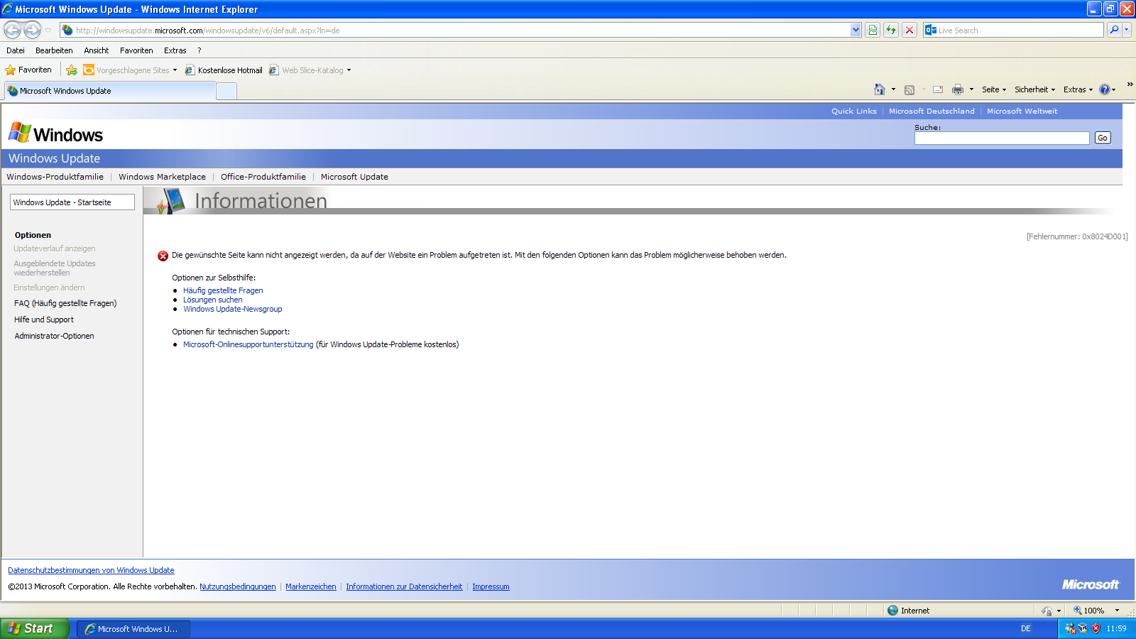 XP Windows-Update Fehlermeldung