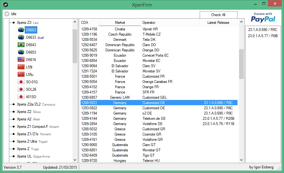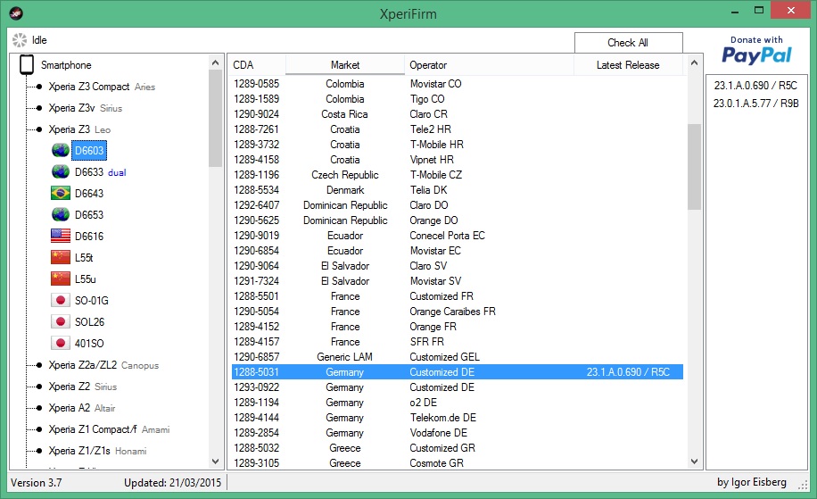 ich konnte auf das Update nicht mehr warten, da ich ab Donnerstag für ein halbes Jahr auf Montage bin und dann nur noch mobiles Internet habe. Da ich das Xperia Z3 und das Xperia Z2 Tablet vorher noch mit den Updates versorgen wollte, habe ich das erste Mal beide Geräte manuell geflasht. Die beiden Firmwares haben zusammen an die 3 GB Datenvolumen. Unter zu Hilfenahme dieser Anleitung klappte das mit ein paar Hindernissen ganz gut. Beide Geräte laufen jetzt mit Android 5.02. Die aktuellen Firmwares für Sony findet man hier... .