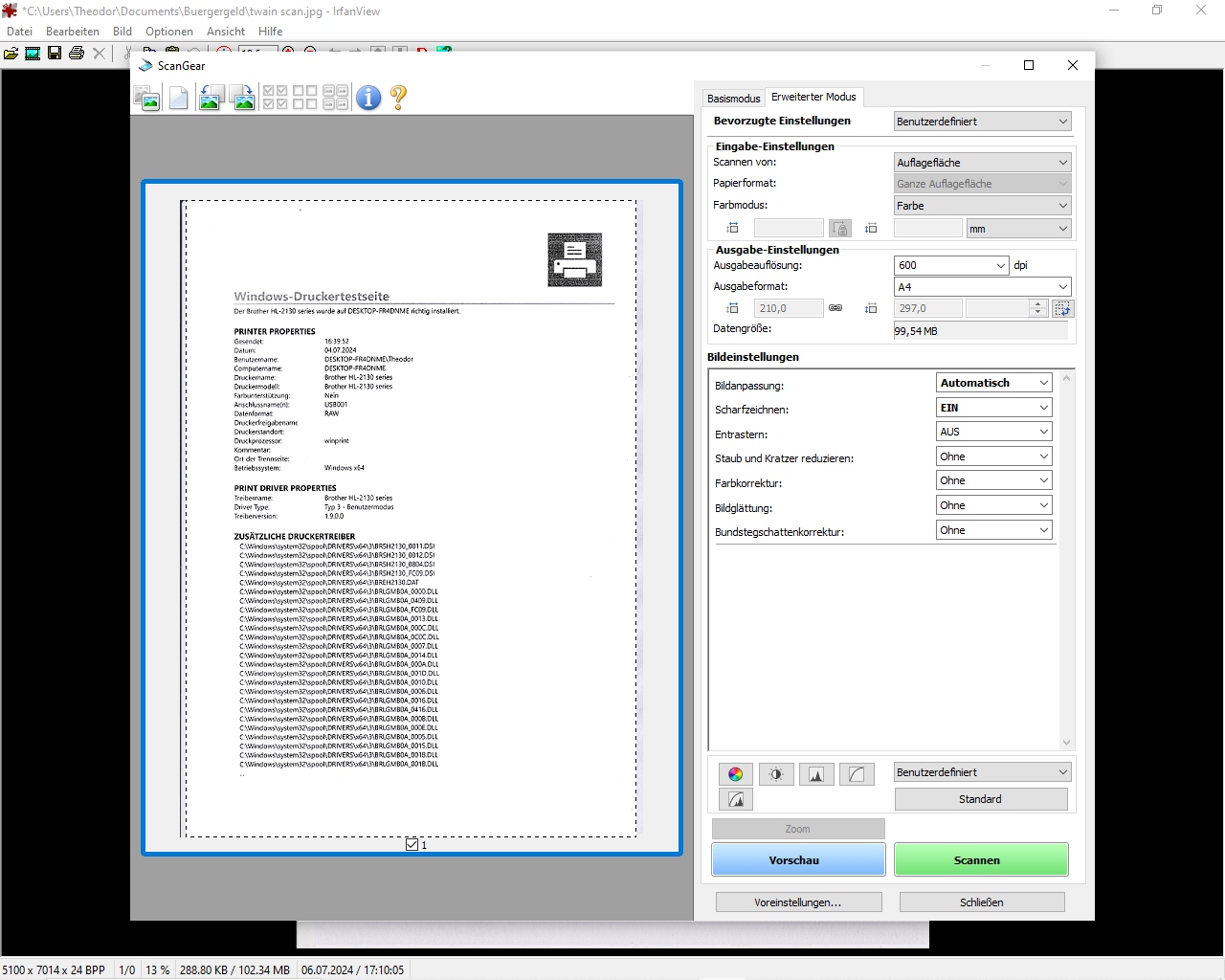 Scanmodus habe ich 600 DPI gewählt.