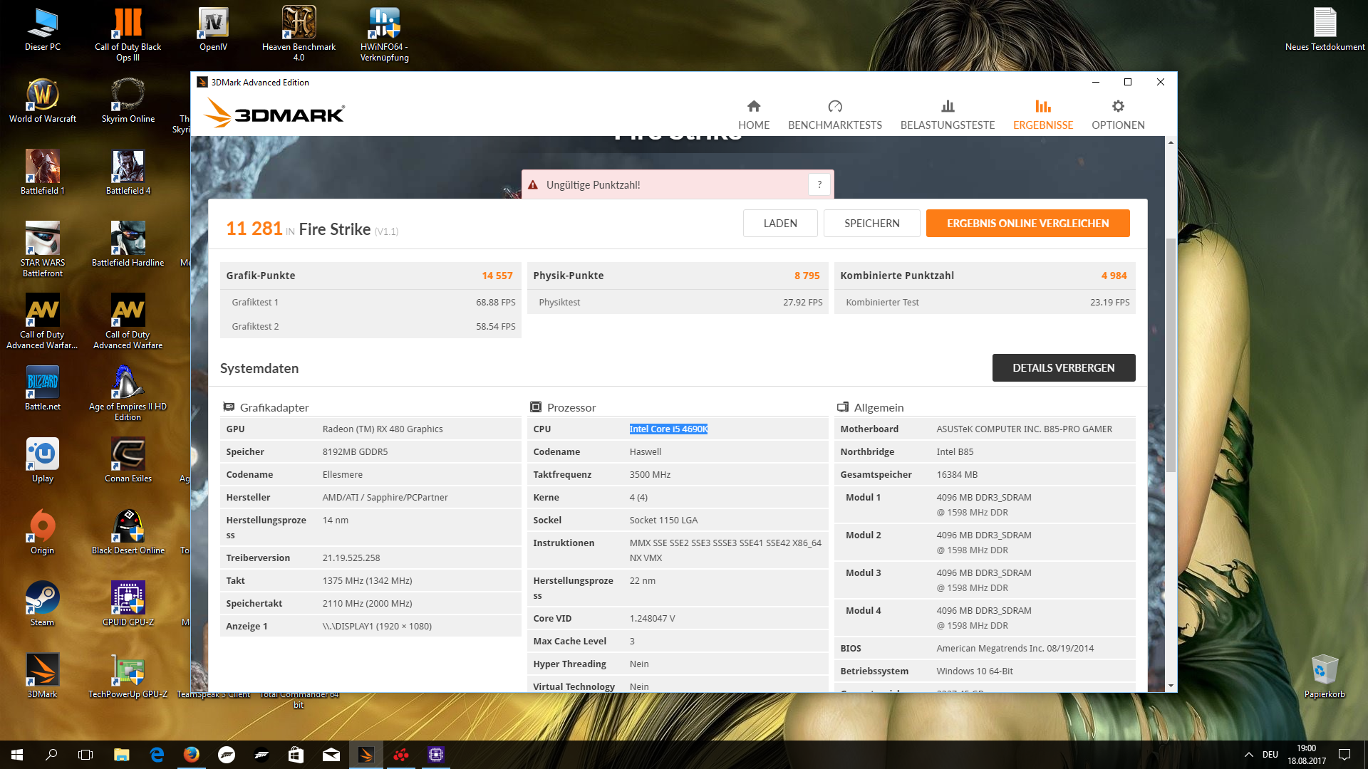 Wieder 3DMark gestartet, Firestrike, und ich hatte die selbe Punktezahl, als hätte ich die RX 480.