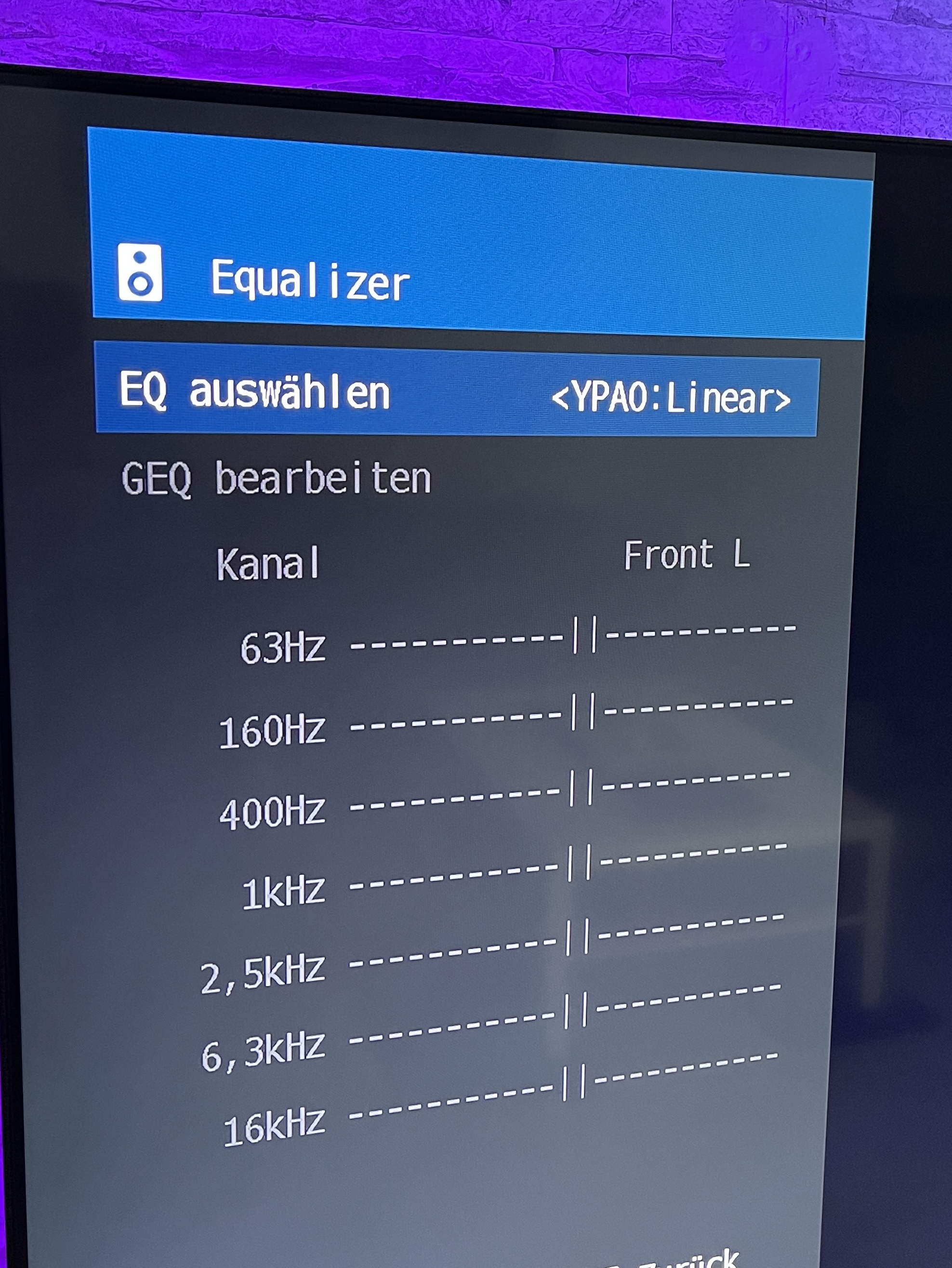 Yamaha EQ steht auf YPAO Linear