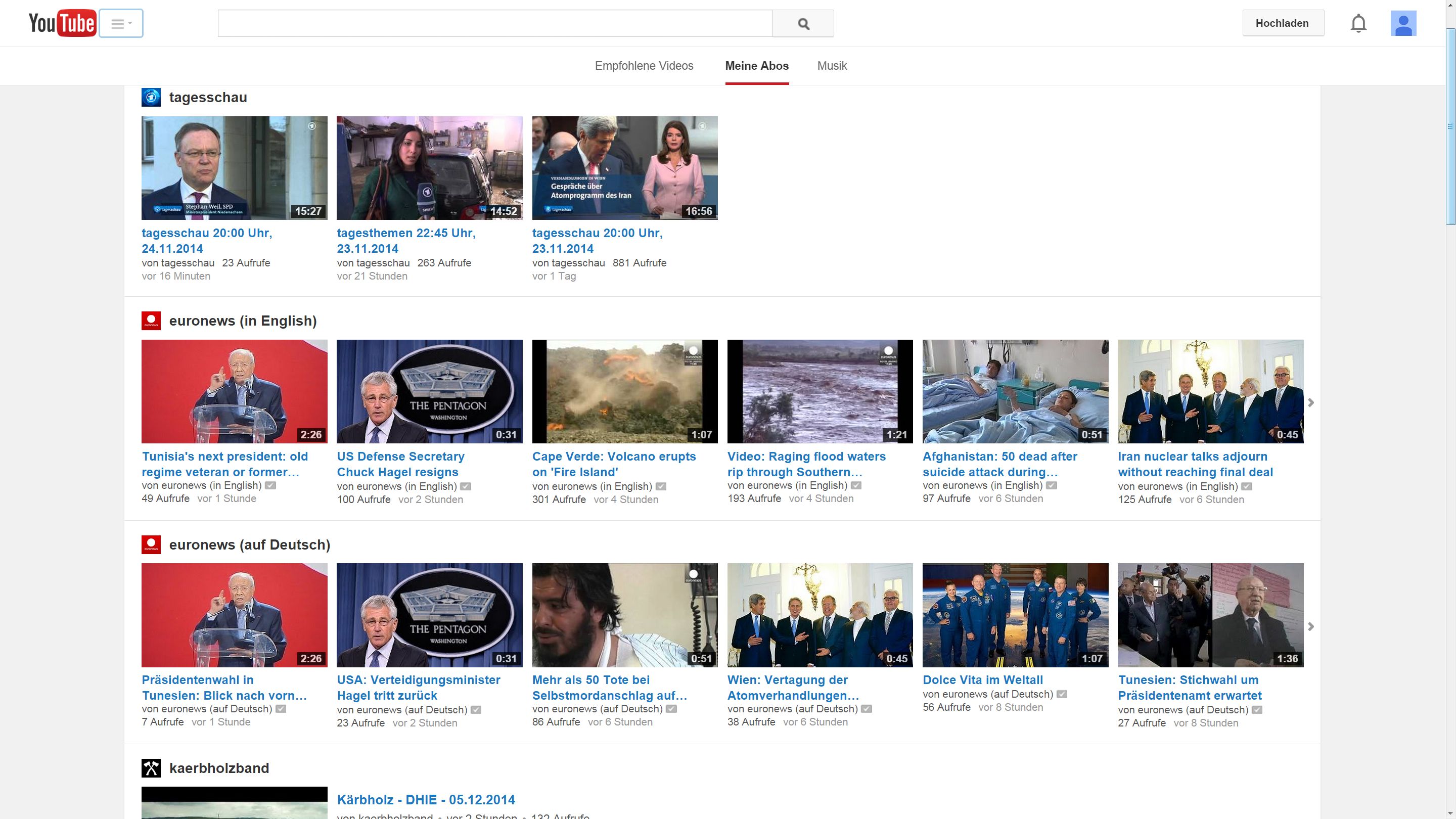 Die von mir am meisten genutzte Ansicht ist die "Meine Abos". Im alten Konto werden dort alle Videos rein chronologisch angezeigt. Der Kanal wird bei dieser Ansicht erst gar nicht berücksichtigt.
