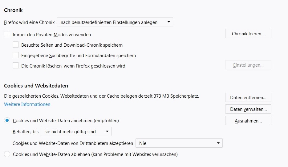 Sobald ich den Browser neu starte wird aber wieder das Standarddesign angezeigt. Meine Einstellungen im Firefox selbst sollten hierbei kein Problem darstellen: