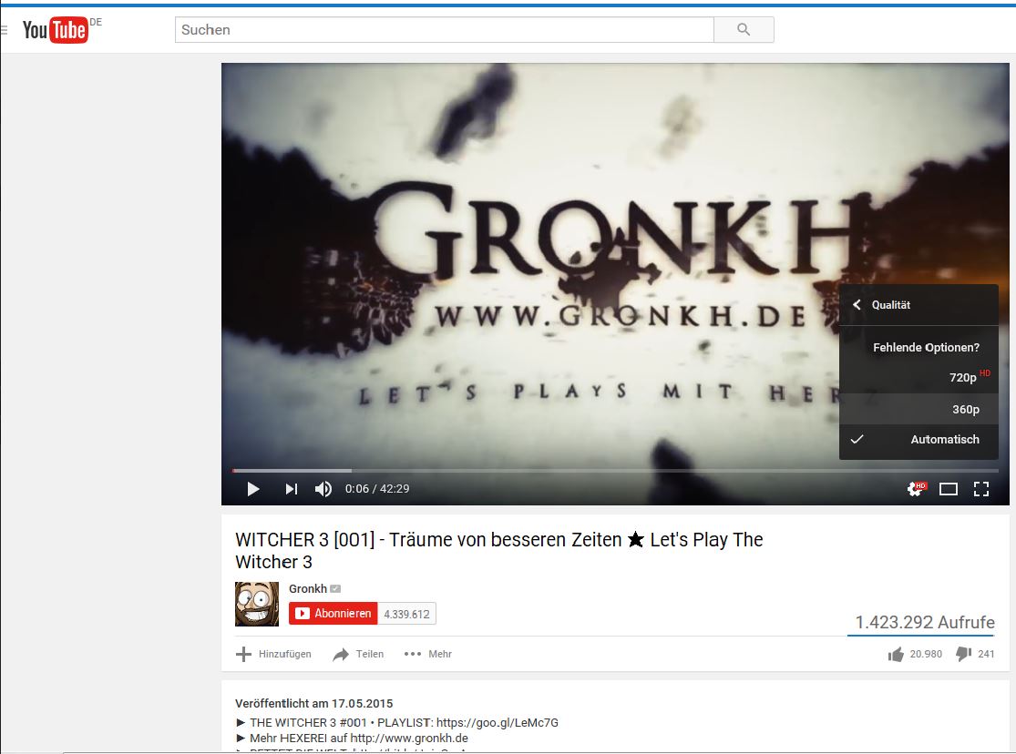 wisst ihr wie ich das hinkriege ? (Es sind ALLE Youtube Videos wo ich nur noch 360p oder 720p anklicken kann)