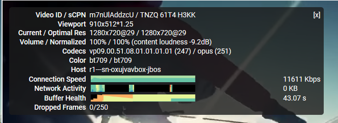 Naja ganz unten "Dropped Frames". Nachdem es geruckelt hat, sollte die linke Zahl nicht mehr "0" sein