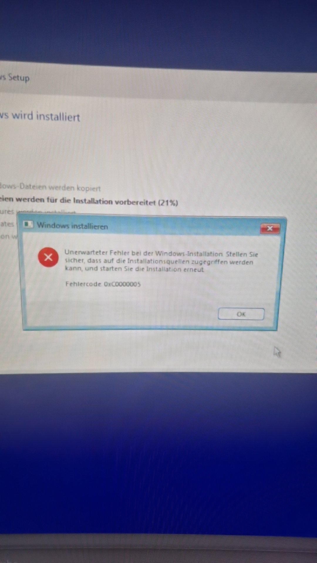 Versucht wurde bereits, BIOS downgrade auf die letzte Version die lief, brachte nichts, cmos reset, brachte nichts, Windows von nen zweiten Stick zu installieren, brachte nichts, auf die zweite ssd, ebenfalls nichts. Ssd low Level Format, nichts, raid 0, ebenfalls nichts, BIOS alles Standard Einstellungen nehmen, auch nichts. Andere USB ports nichts. Memtest gemacht bis keinerlei Fehler gefunden laut BIOS. BIOS downgrade auf die Auslieferung Version, nichts es geht nichts. Es stützt immer ab und es steht an unterschiedlichen Stellen. Mal mit dem oben genannten Fehler mal fällt das setup einfach zurück vom Punkt jetzt installieren wieder auf die vorherige Seite. Bei den Screenshots beachte man bitte die % im Hintergrund das es nicht zwei mal der selbe ist.
