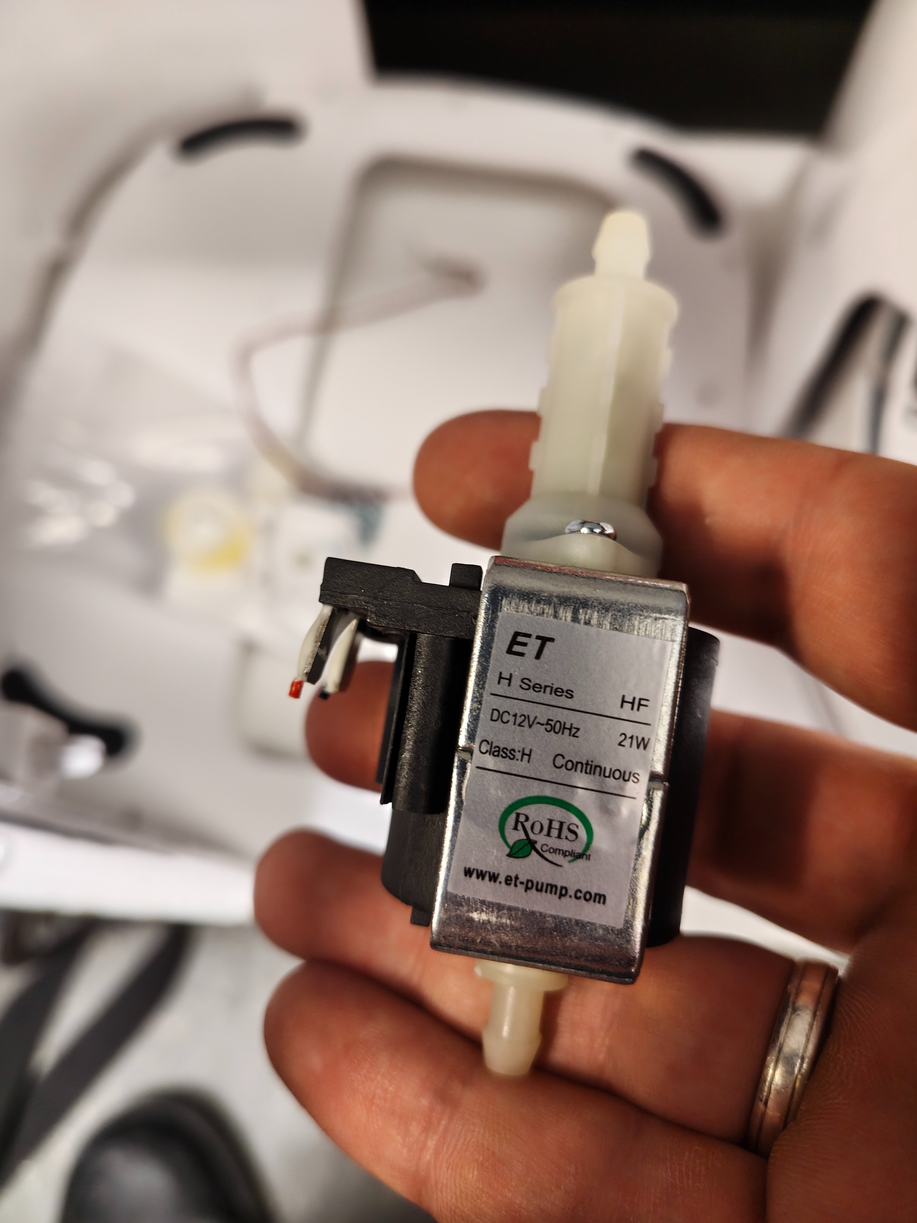 Dort findet man eine Pumpe diese ist zu 99% defekt bzw klemmt und selbst wenn man sie reinigt sobald ein paar Tage rum sind wird sie wieder klemmen, Daher austauschen ! (Klemmt oder ventil klemmt und wasser kommt nicht durch) beides nicht zuverlässig behebbar.