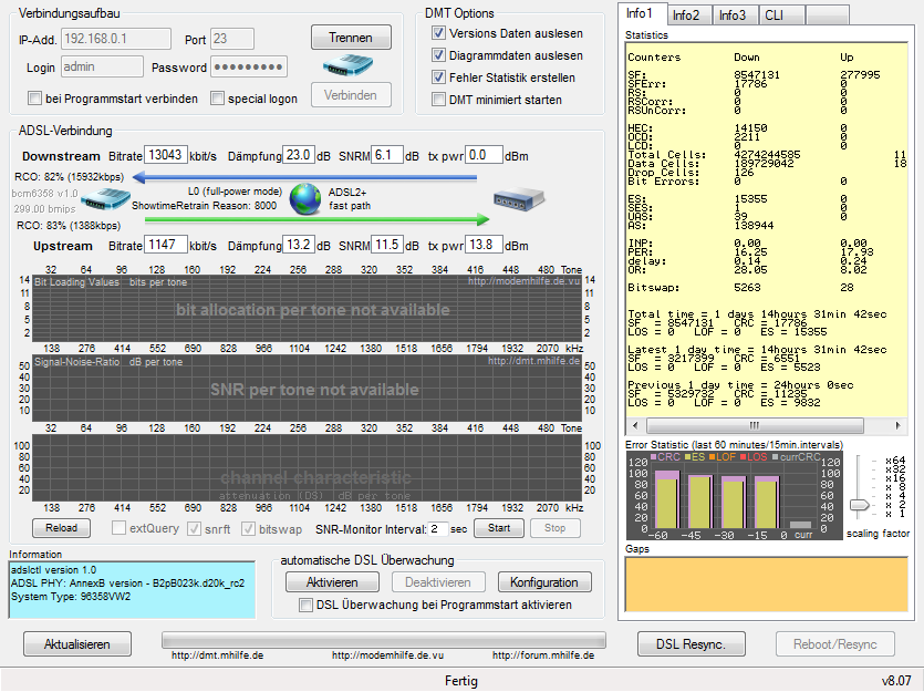 Dann habe ich 0 Fehler, aber auch nur noch 5Mbit.. komme nicht drum herum, ich hol ne neue Fritzbox und gucke mal.