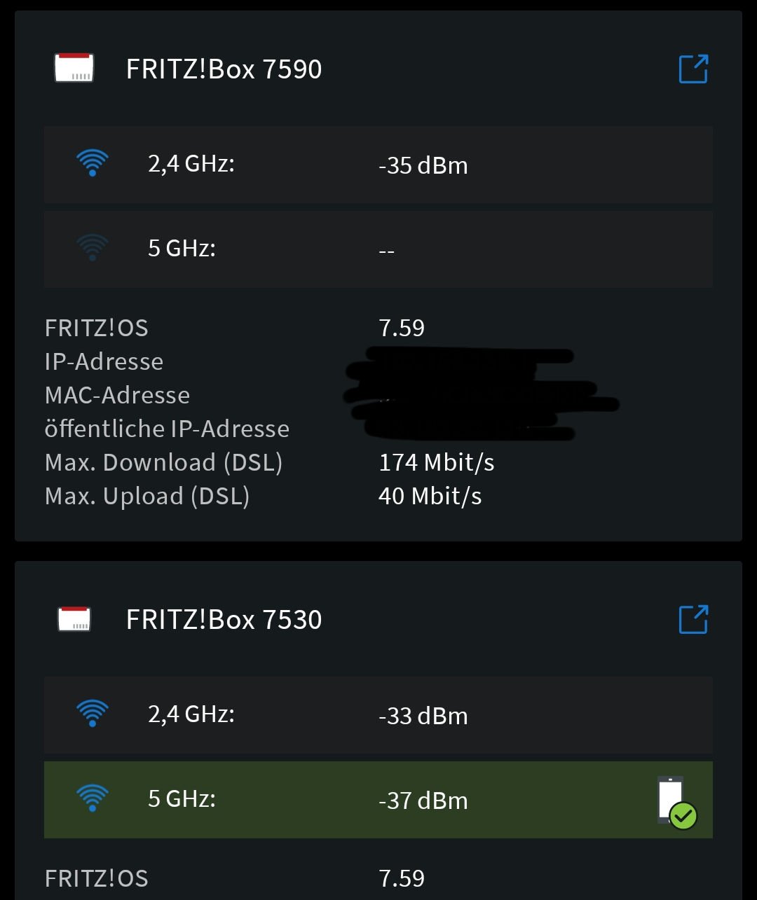 @ Norkoeri: ich bin gerade erst umgezogen. Die beiden Fritzboxen habe ich noch von der alten Bude. Jetzt ist eine Etage fertig, da steht die 7590, die andere Etage braucht noch etwas. Da sollte eigentlich die 7530 funken.