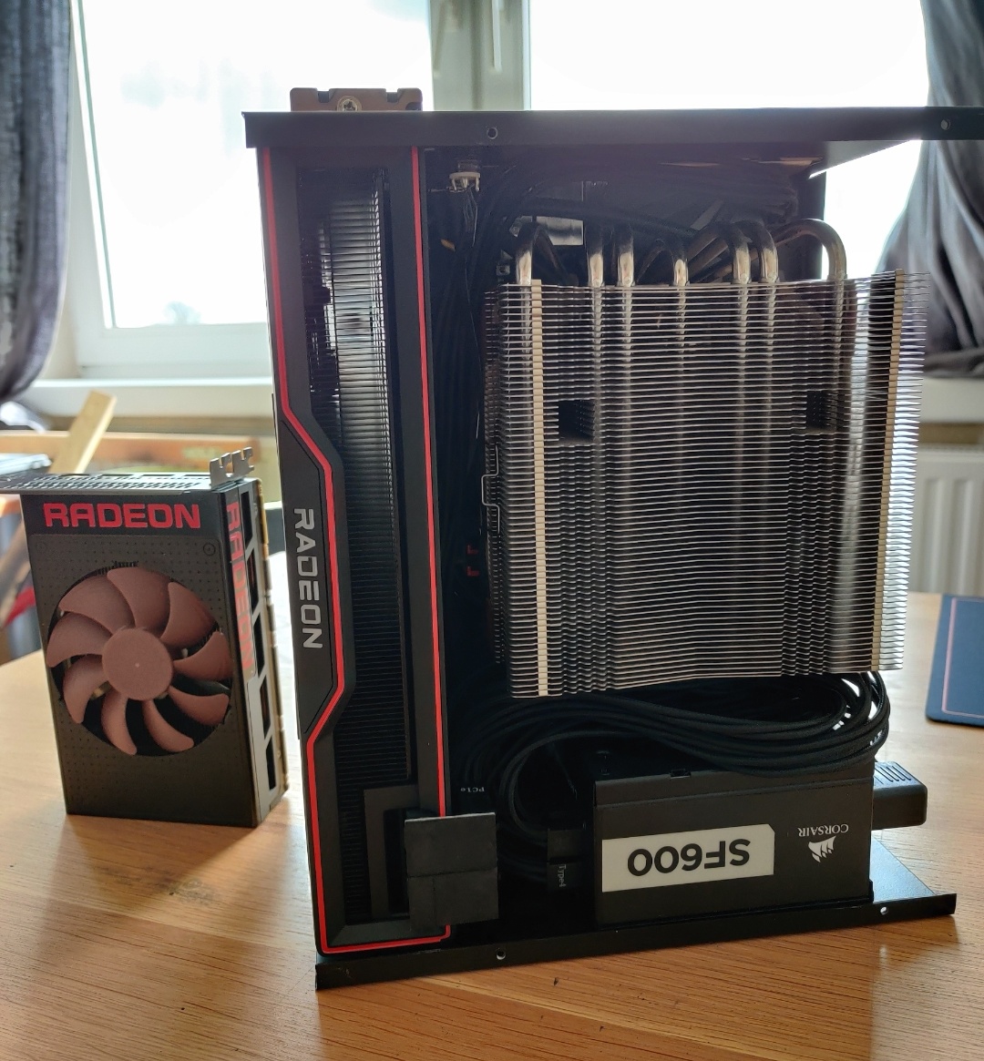 Habe selber ein DAN A4. Finde es schade, dass man auch hier nicht oben wenigstens 15 mm tiefe Lüfter verbauen kann. Das gäbe beim Airflow sehr viel Potential.