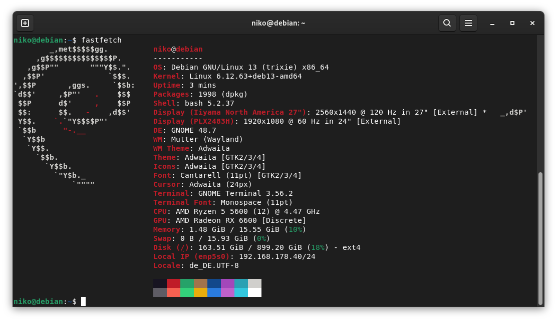 Nun habe ich mir Debian 13 (Gnome) installiert. Nach vier Tagen konnte ich noch nicht viel Erfahrung sammeln, außer dass der PC nicht so laut wie CachyOS ist und die Mikro-Ruckler wie mit openSuse in WoW nicht da sind. Achja in allen Fällen waren die FPS auf 60 gelockt.