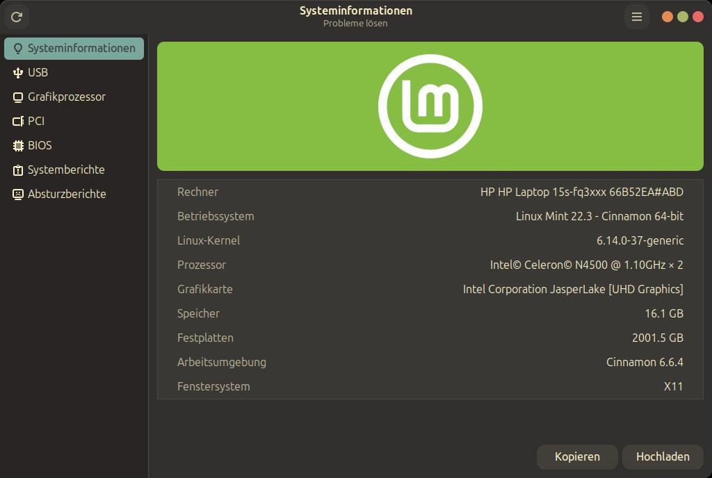 Vorher hatte ich Linux Mint Cinnamon im Dual-Boot mit Windows 10 installiert, welche sich um die 128GB SSD stritten. Ich muss mal schauen, ob ich diesem Stück noch einen weiteren 8GB-DDR3 Riegel spendieren kann.