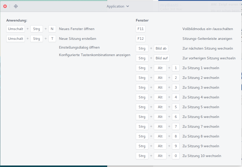 Schau dir mal alle an. Gehe dafür in die Mitte, kannst da Umstellen Terminal usw. Standard = STRG+O = Sitzung öffnen. Super ... die Kombi brauch ich bei Nano um zu speichern. So was geht einfach nicht. Mir sind noch ein paar Sachen aufgefallen von weniger als einer Minute. Für mich ist das nichts.