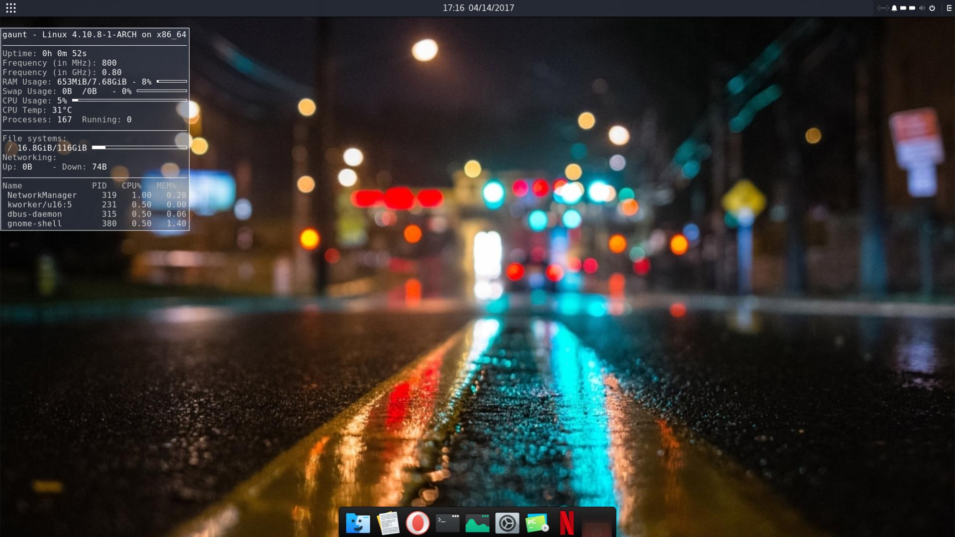 Als Desktop habe ich Gnome zusammen mit dem Arc Dark-Theme installiert: