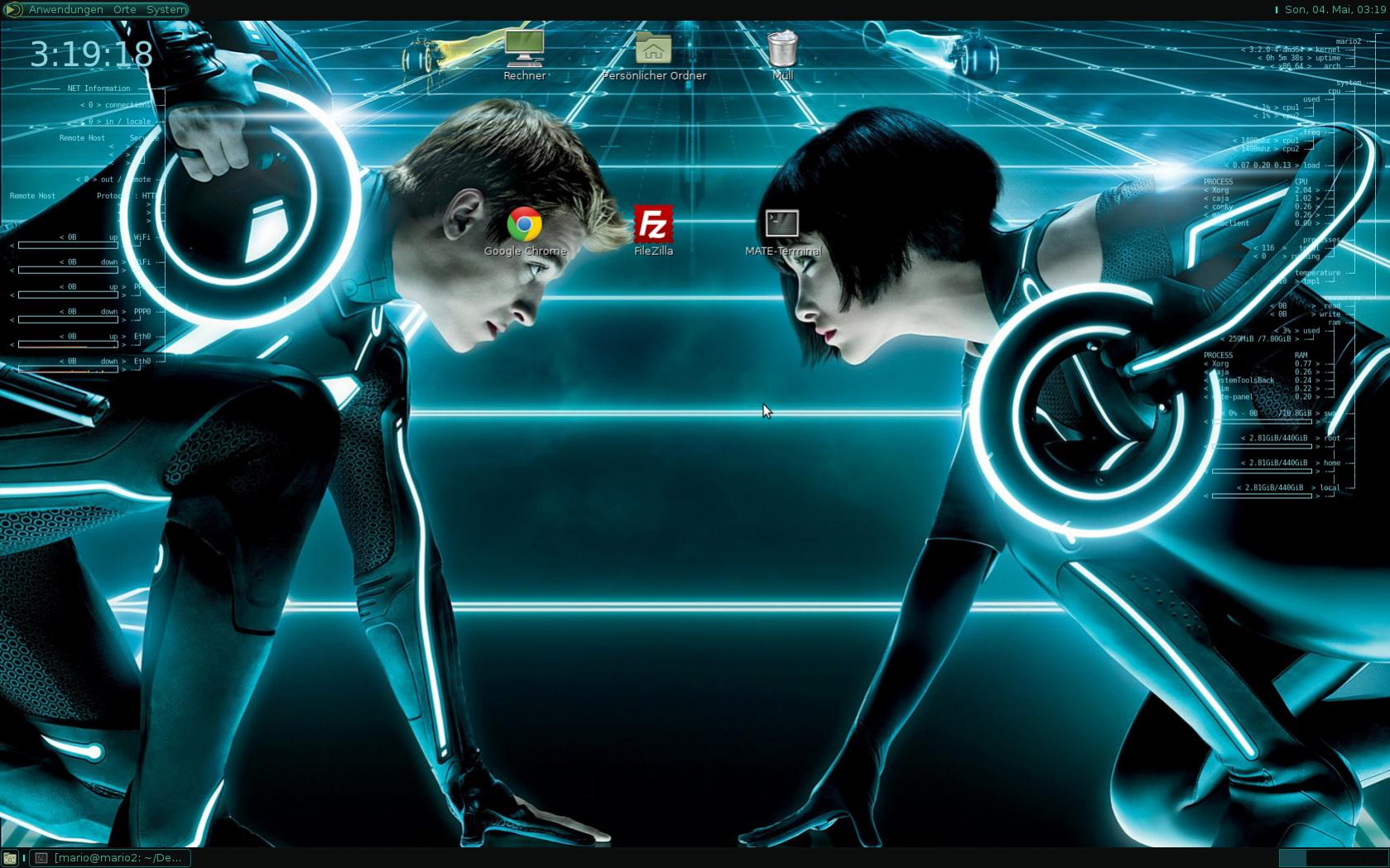 Naja mit Conky hab ich mich vor 2 Jahren mal auf Arbeit befasst und allgemein mit Desktops unter Linux noch zu wenig. Ist halt doof, wenn man Linux nur als VM benutzt bzw auf der Arbeit nur mit Konsole (hab leider keinen Linux-PC mehr ).