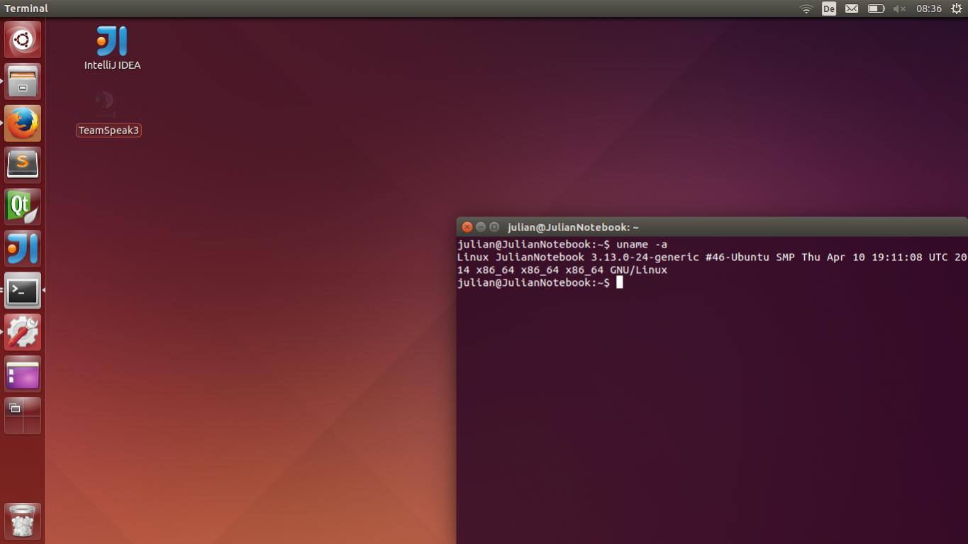 Hier ein erstes Bild von meinem frisch eingerichteten Ubuntu 14.04 auf meinem neuem Thinkpad Edge E145(A4-5000 Version mit 8GB RAM und HDD gegen eine Samsung EVO 840 250GB getauscht)