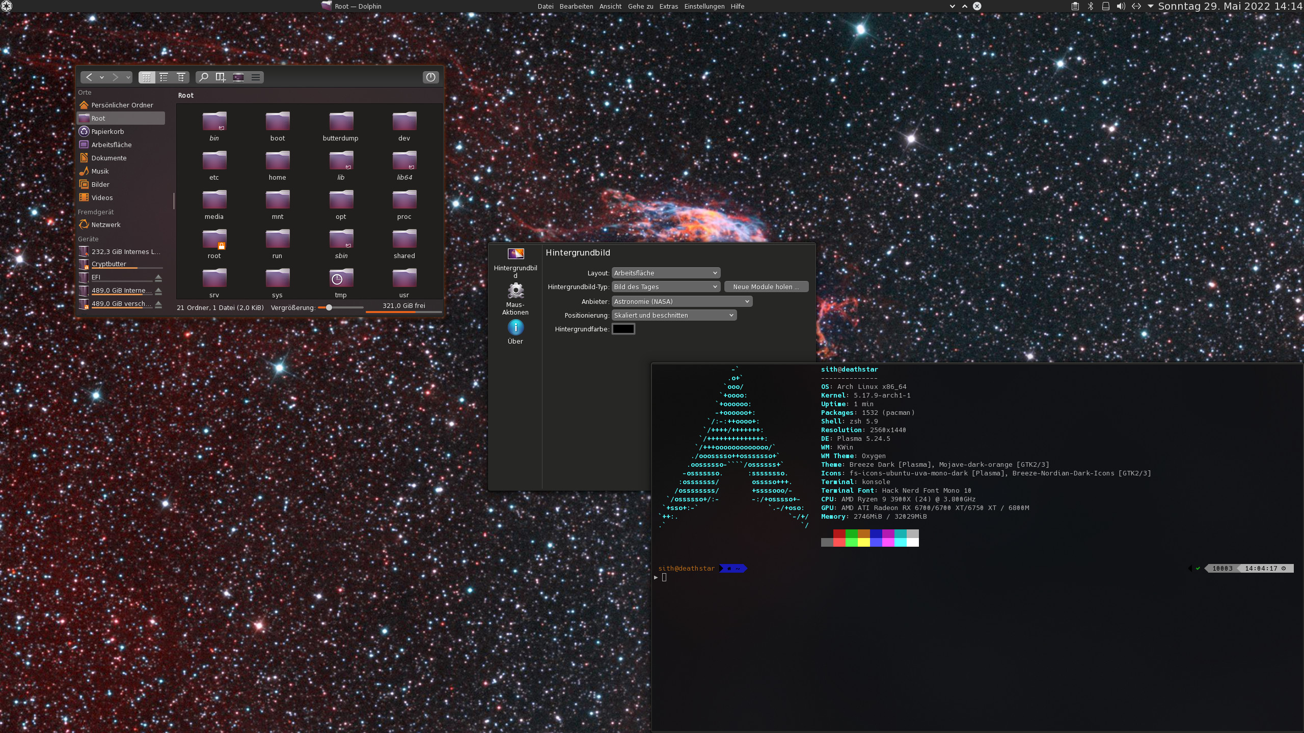 Die Farben der Widgets (qtile) gefallen mir noch nicht 100%. Da weiß ich noch nicht, ob es bunt sein soll (so wie jetzt. Dafür ist das ganze relativ schnell unterscheidbar) oder ob ich mich auf 2 Farben beschränken soll...