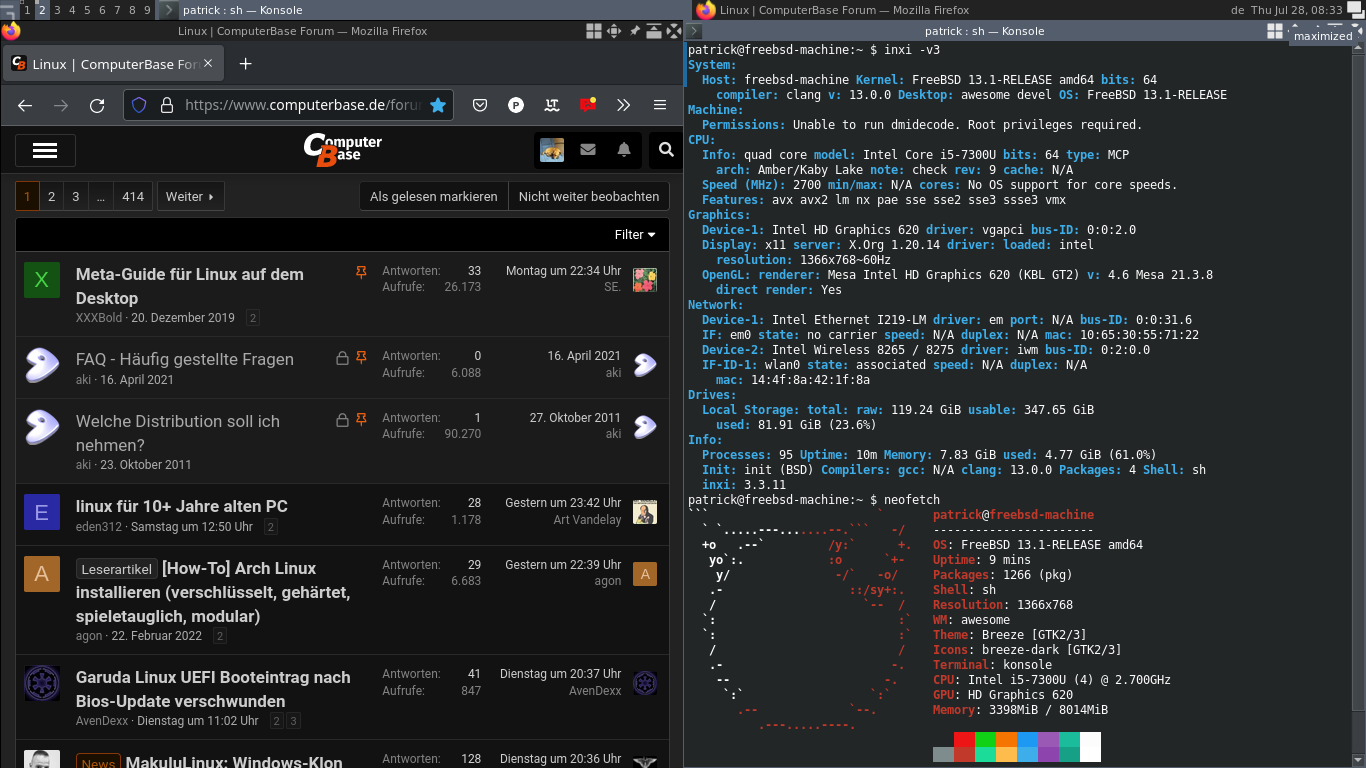 Nicht im Bild die untere XFCE Taskleiste, die blendet sich automatisch aus. Erwähnenswert ist hier nix weiter, das