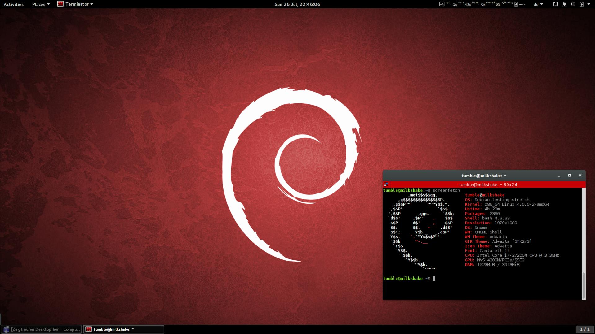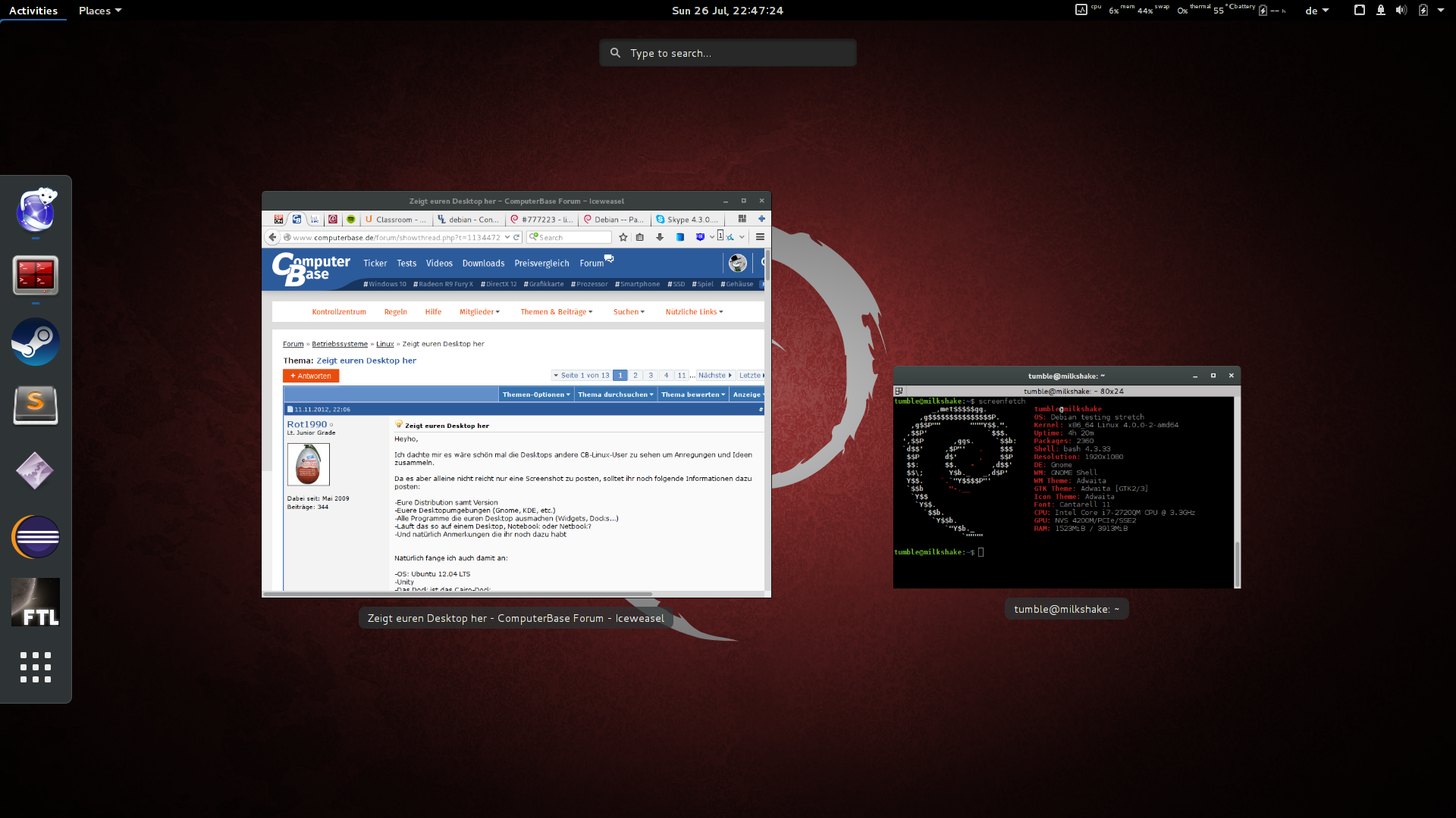 Conky finde ich aktuell unnötig, ein anderes Theme vielleicht in abhängigkeit davon was ich als nächsten Schnappschuss bekomme.