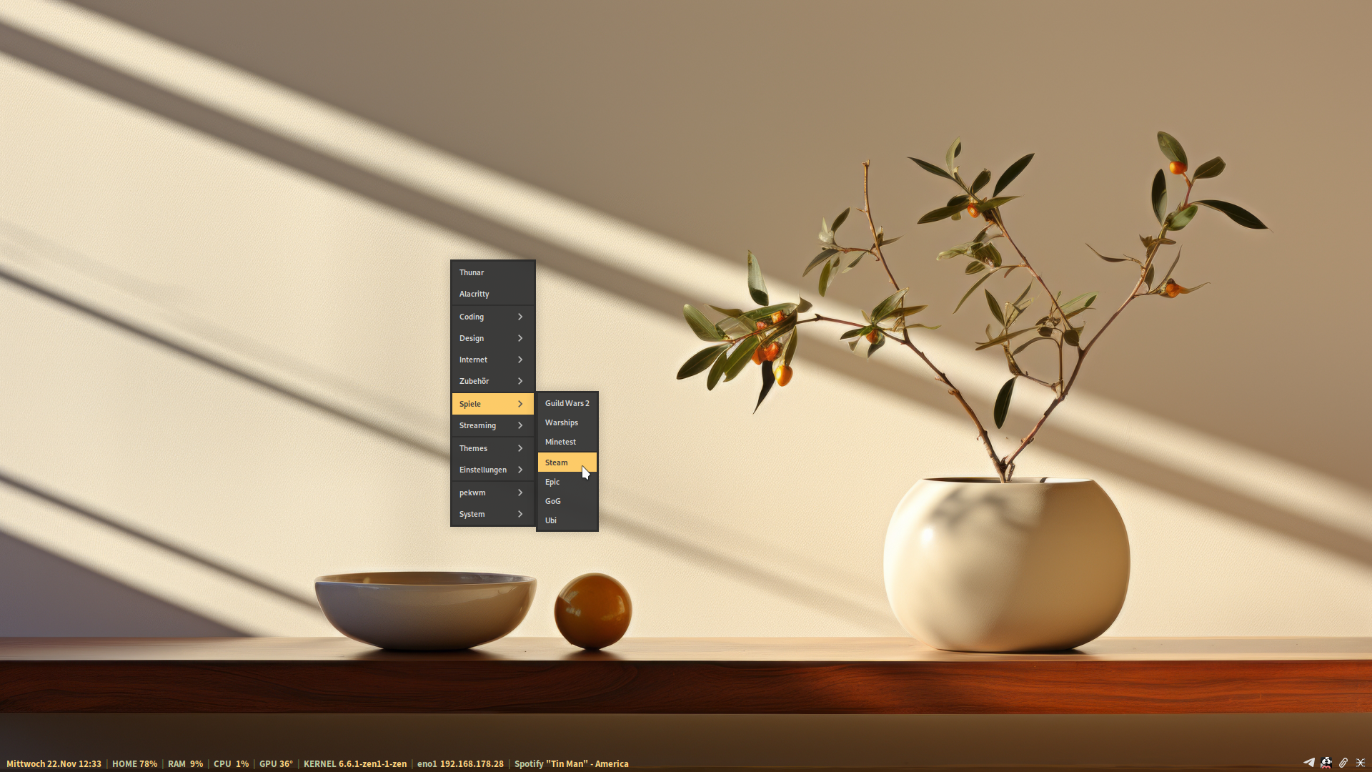 Arch, Pekwm. Eigenes Design.