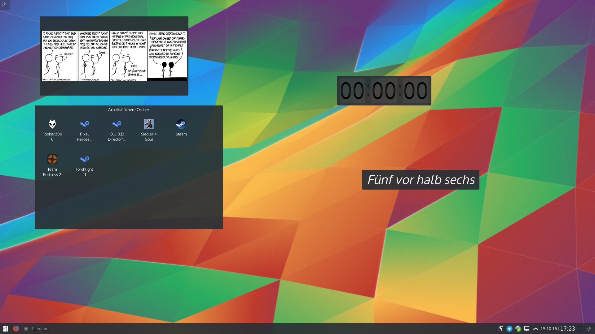 Besonders gefällt mir, dass im Gegensatz zu manch anderen Desktopumgebungen die Sprache der Texte sehr konsequent beibehalten wurde, es gibt so gut wie keinen Englisch-Deutsch-Mix im UI. Ein kleines "Easteregg" habe ich allerdings auf dem Desktop versteckt. Wer findet es?