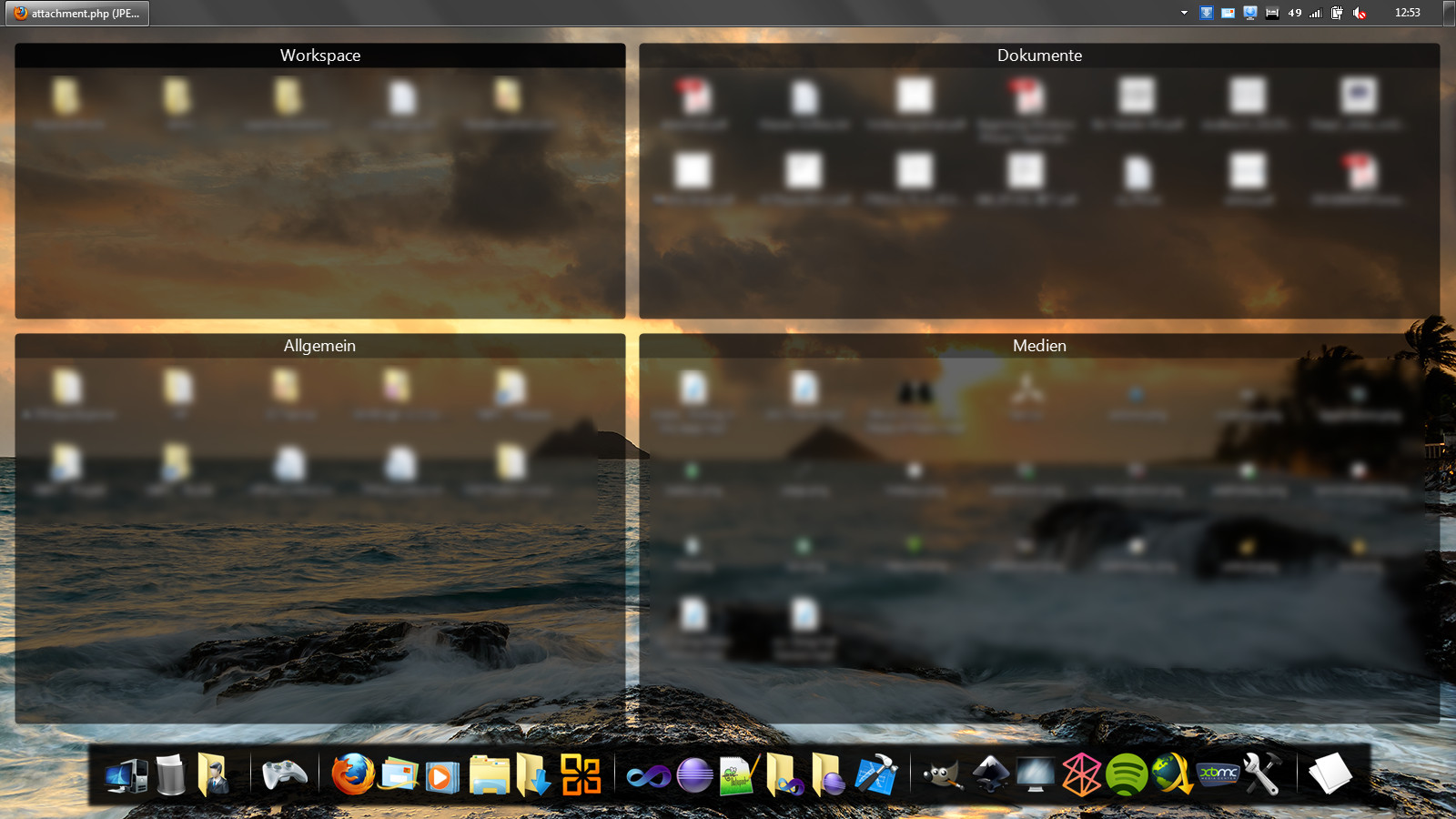 Bitte achtet beim Posten von euren Desktops darauf, diese im *.jpg oder *png Format zu speichern. Die Bilder können über den Button "Anhänge verwalten" zum Forumbase-Server hochgeladen werden. In dem sich nun öffnenden Fenster seht ihr die max. Größe der hochzuladenden Datei. Die Bilder im Anhang haben automatisch eine Vorschau, im Thread ist also eine kleine Version des Bildes zu sehen und wird mit einem Klick in einem neuen Fenster in voller Größe geöffnet.
